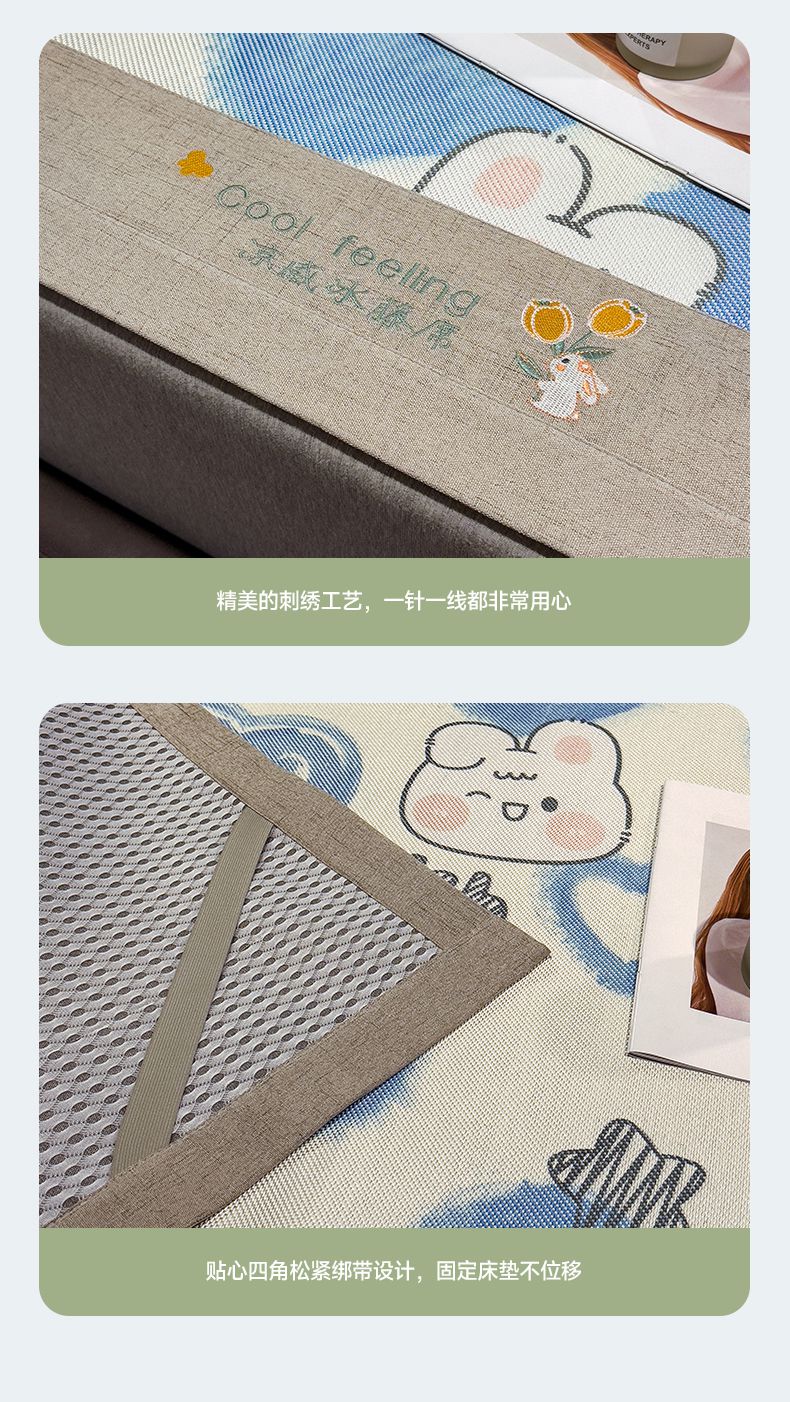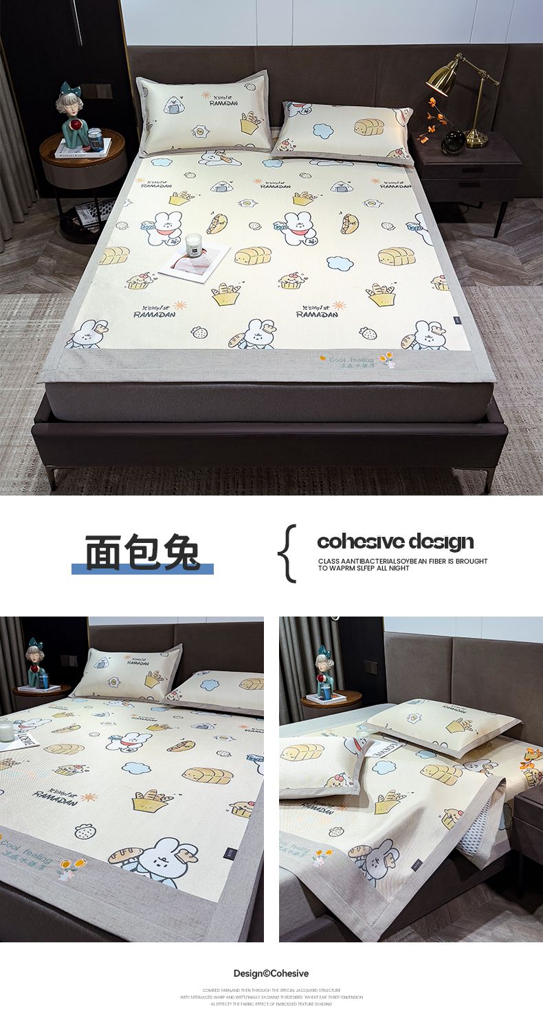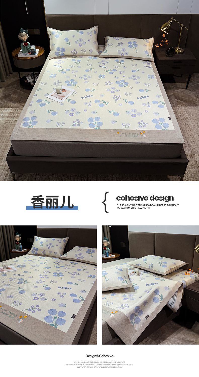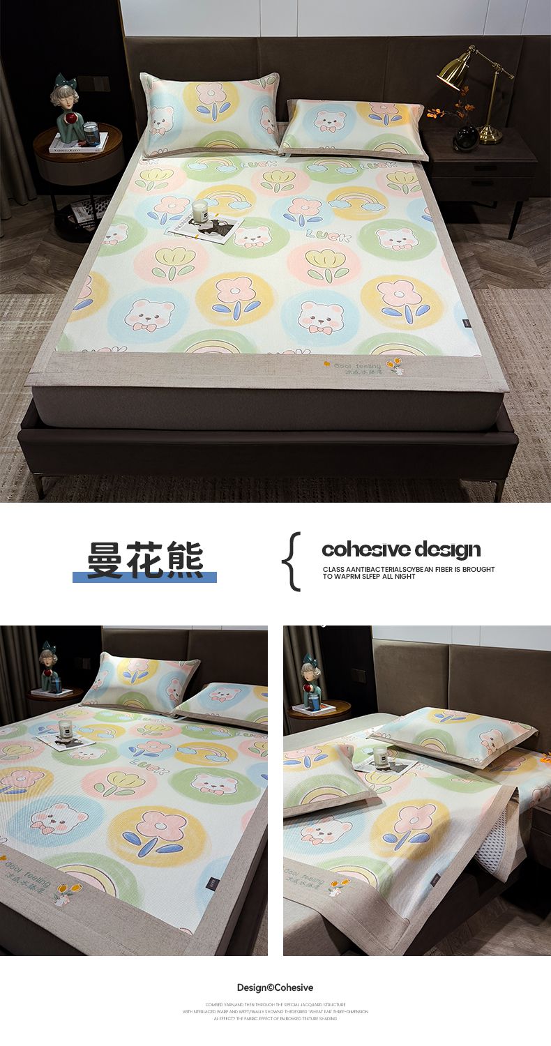 商品名称:摩妮卡 2025新款数码印花冰藤席床席款三件套 小甜心