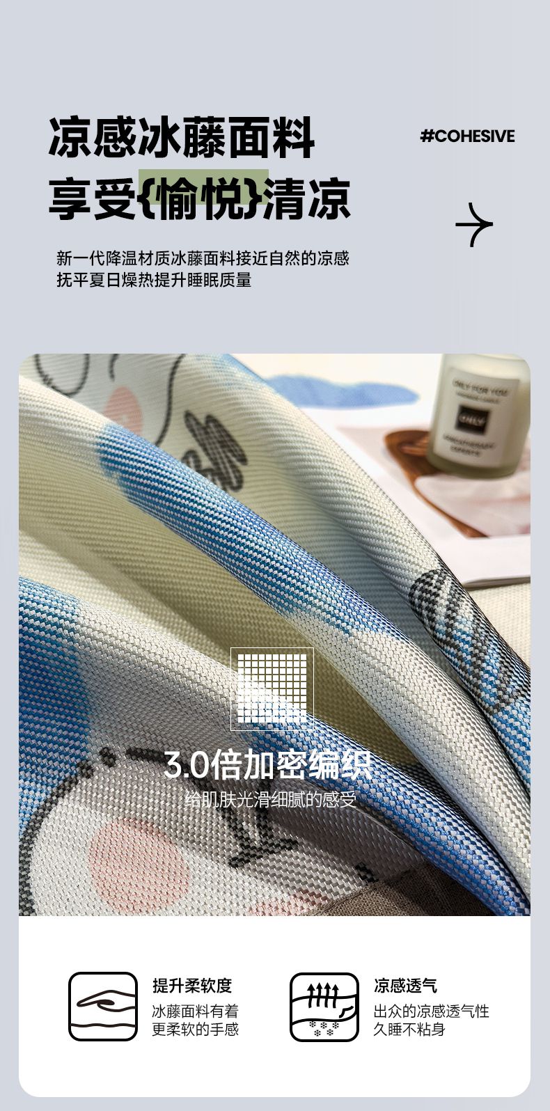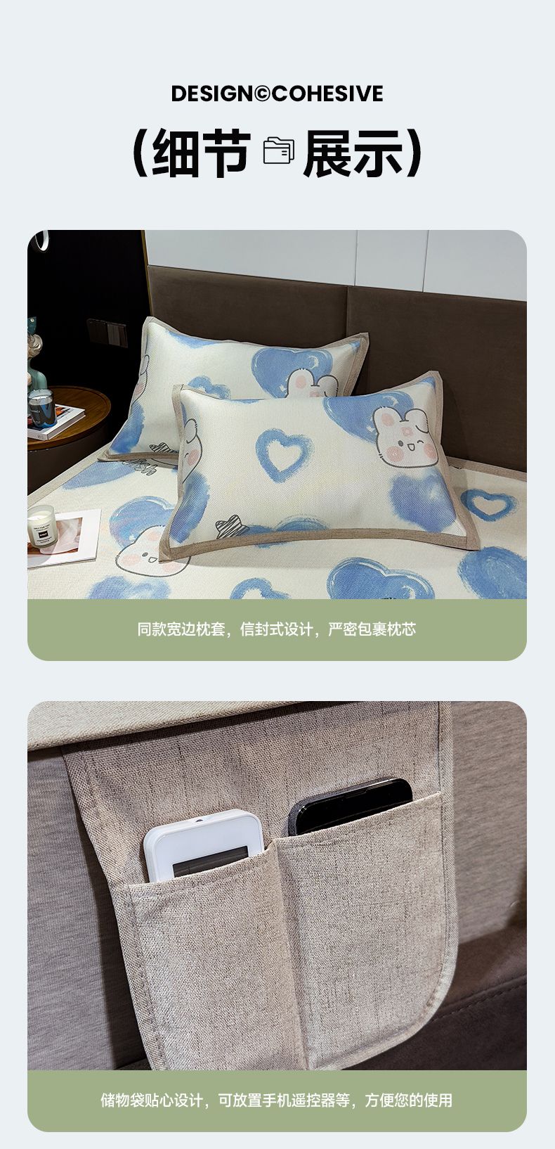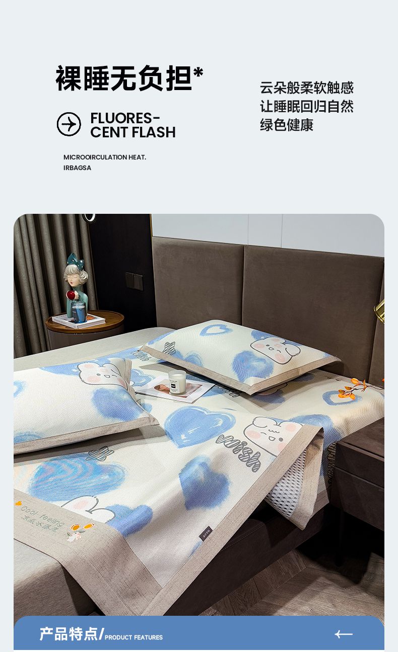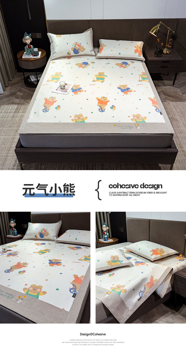 商品名称:摩妮卡 2025新款数码印花冰藤席床席款三件套 小甜心