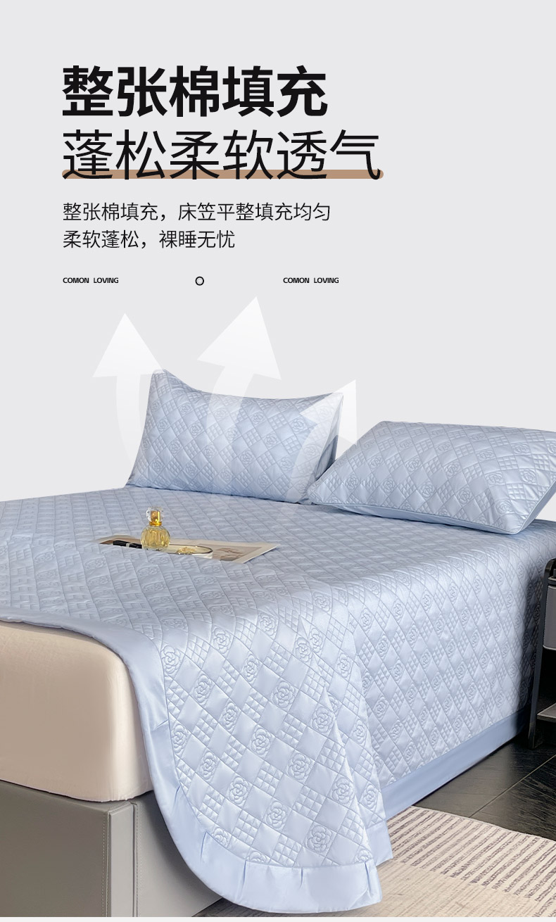 (总)2025新款A类100支长绒棉夹棉床盖三件套全棉纯棉加厚绗绣床单四季款床上用品,茶绿,黛紫,慕蓝,奶玉,颜粉