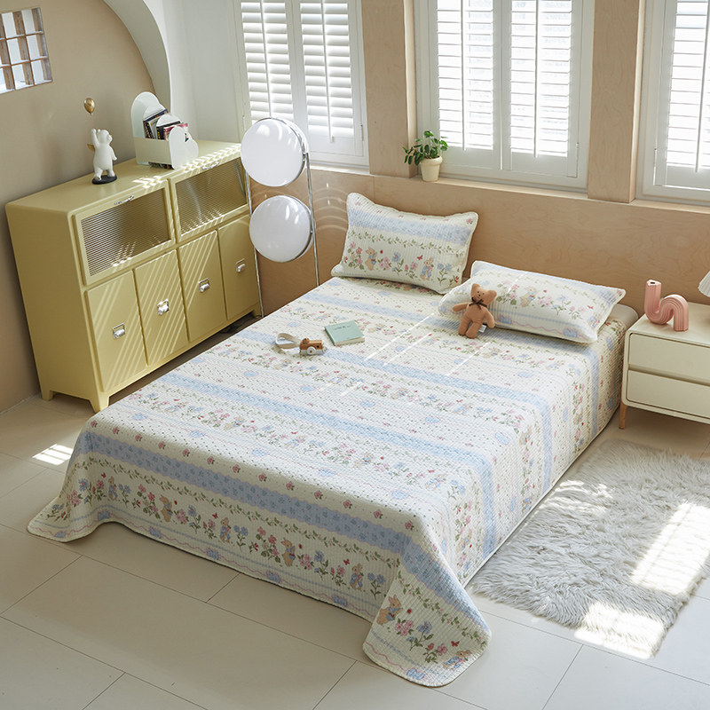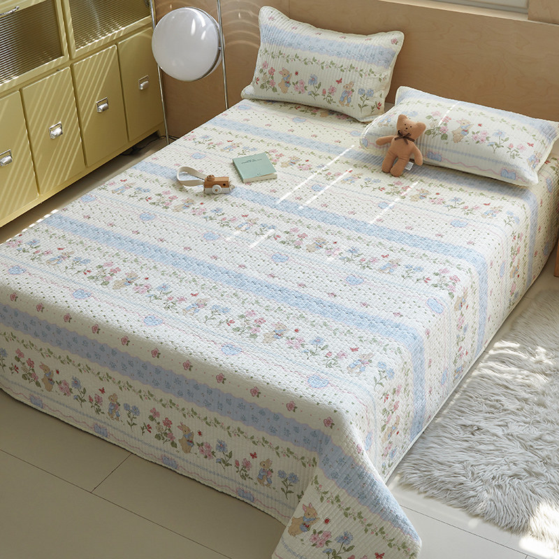 舒居家纺 2025新款双面全棉酵素砂洗床盖 兔兔乐园