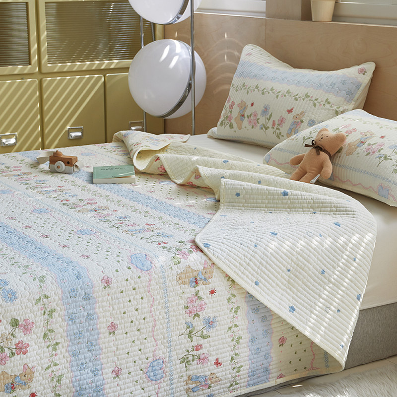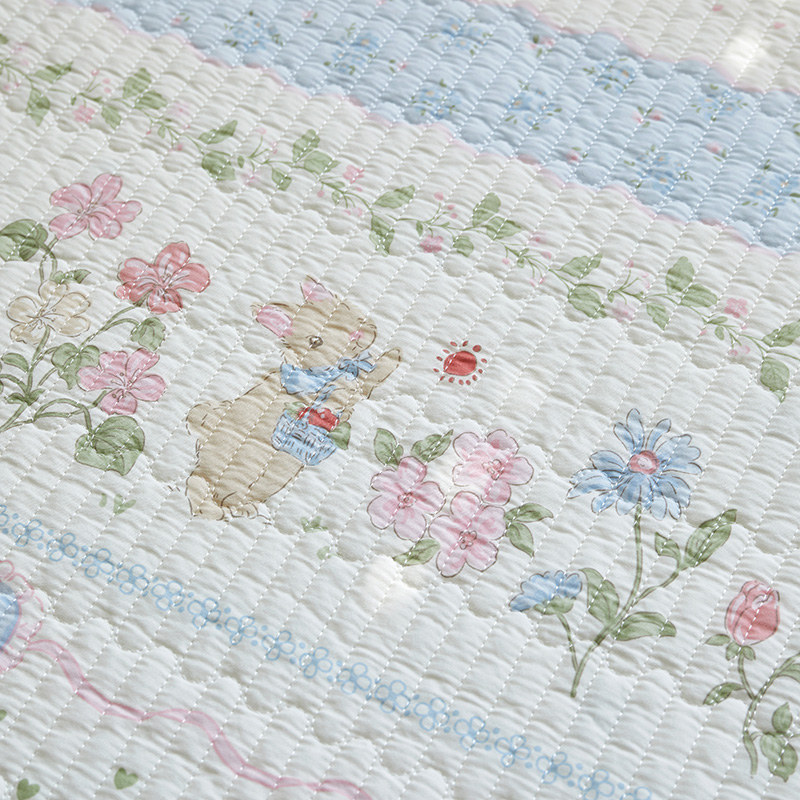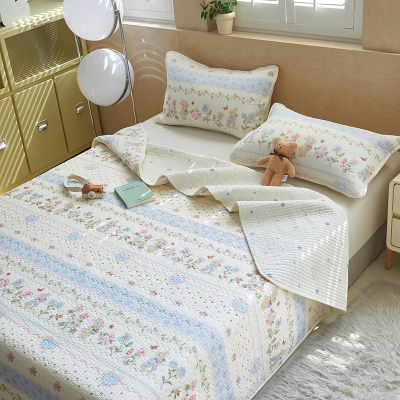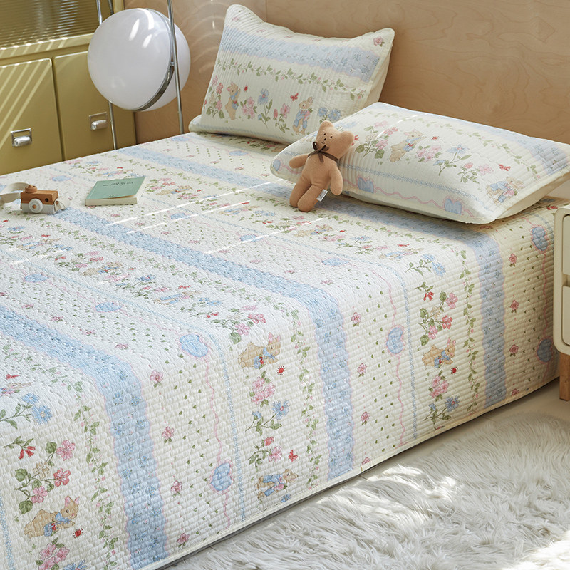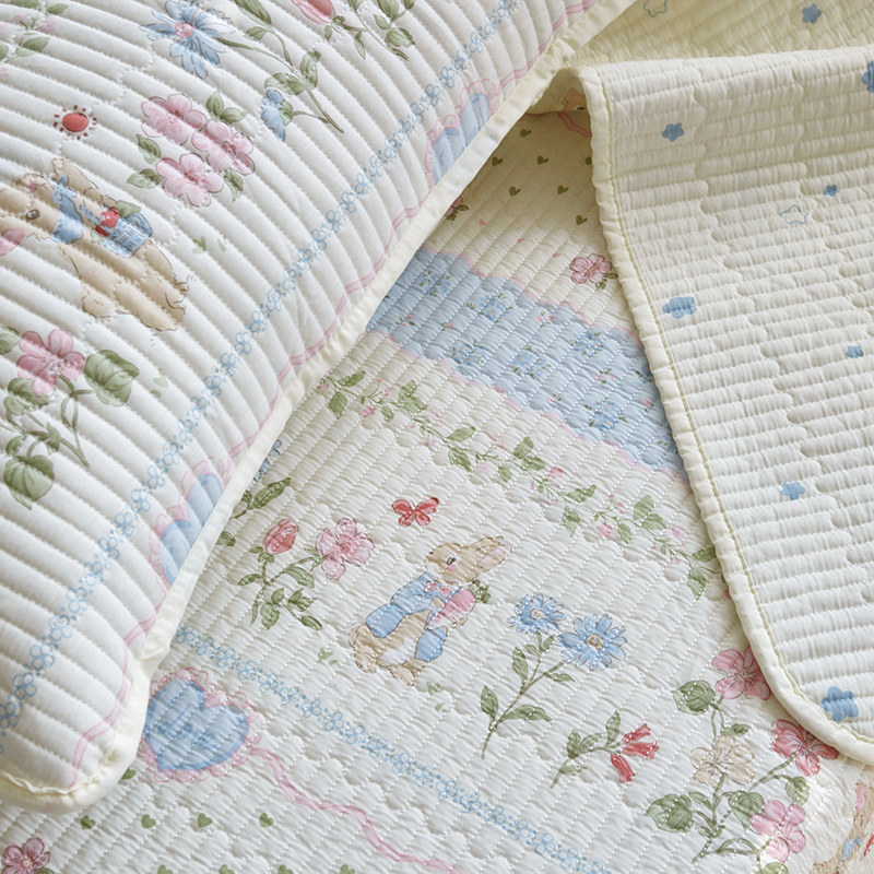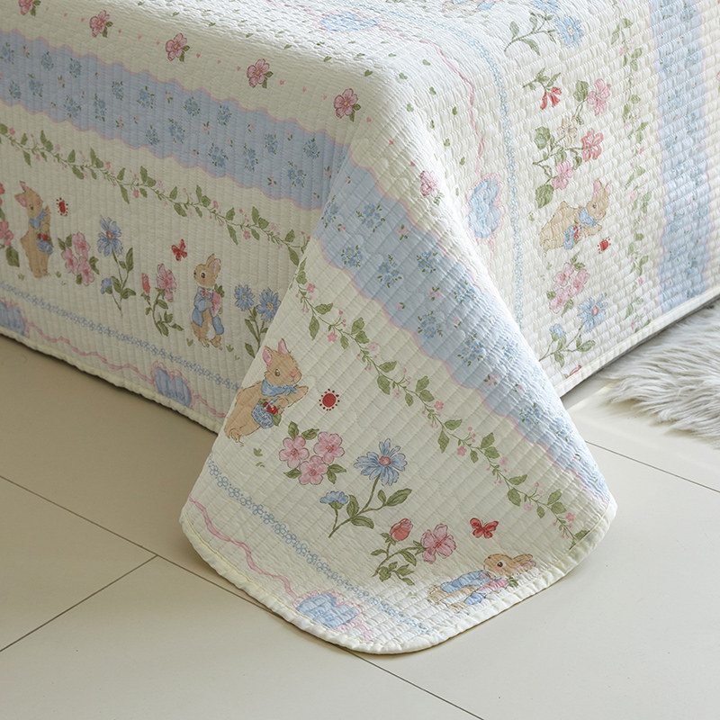 商品名称:舒居家纺 2025新款双面全棉酵素砂洗床盖 兔兔乐园