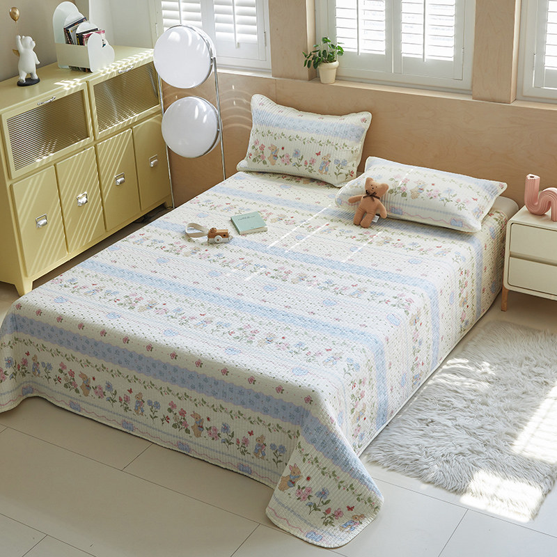 (总)舒居家纺 2025新款双面全棉酵素砂洗床盖( 风格一),爱心木马,比利小熊,花季少女,花开无声--咖,花睿--青草绿,洛琳-粉,迷彩花兔,俏皮狗,兔兔乐园,小汽车,樱桃格子