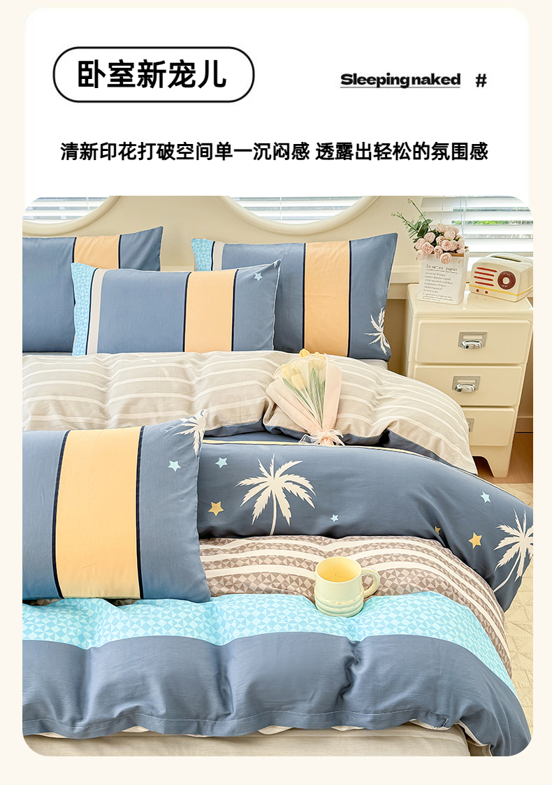 商品名称:铭浩 2025新款全棉印花四件套 漫步云端