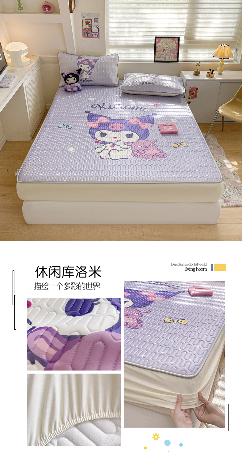 金爱家 2025新款三丽鸥乳胶凉席大版床笠款 床笠款-桃心库洛米