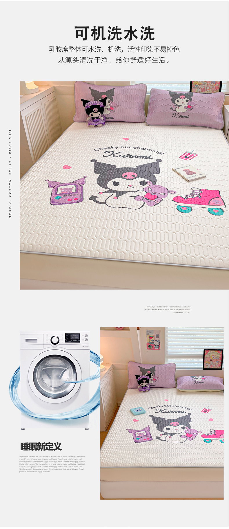 商品名称:金爱家 2025新款三丽鸥乳胶凉席大版床笠款 床笠款-桃心库洛米