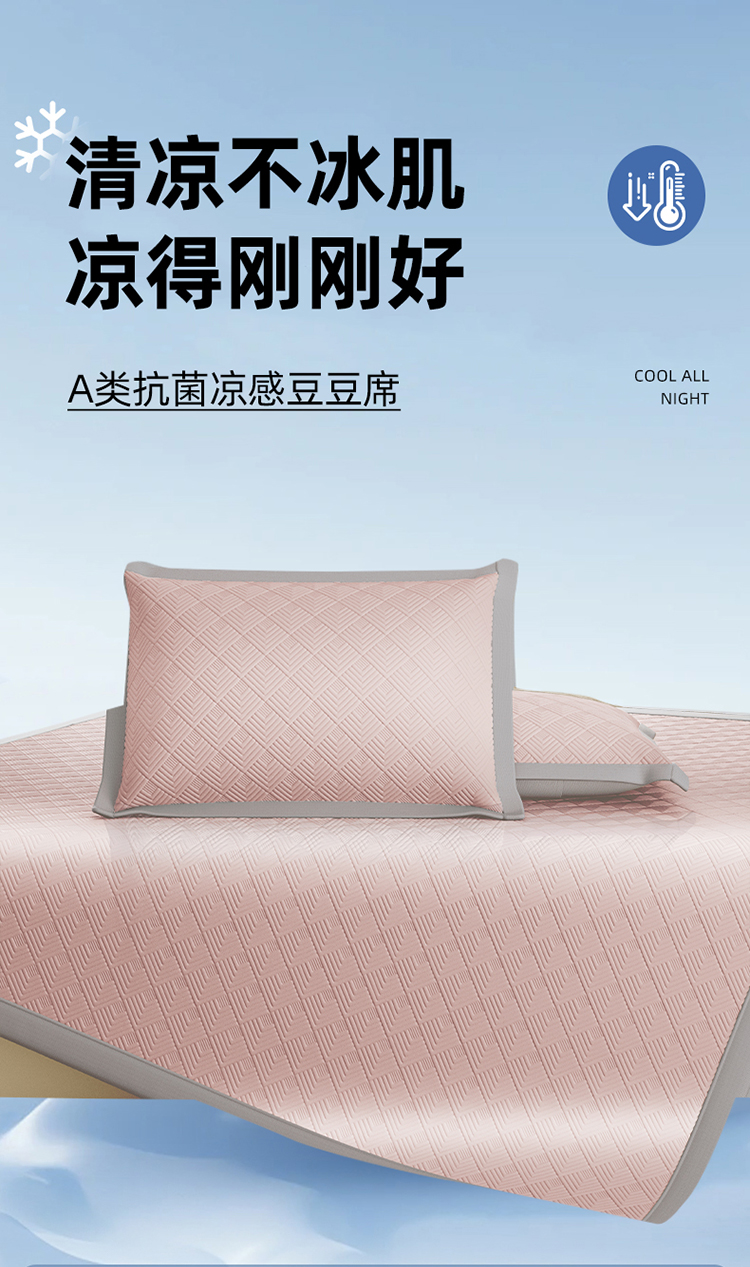 (总)鑫姿席业 2025年春夏新款A类抗菌凉感豆豆凉席-软床席,软床席-粉色,软床席-灰色,软床席-卡其,软床席-浅黄,软床席-深蓝,软床席-水绿,软床席-天蓝色