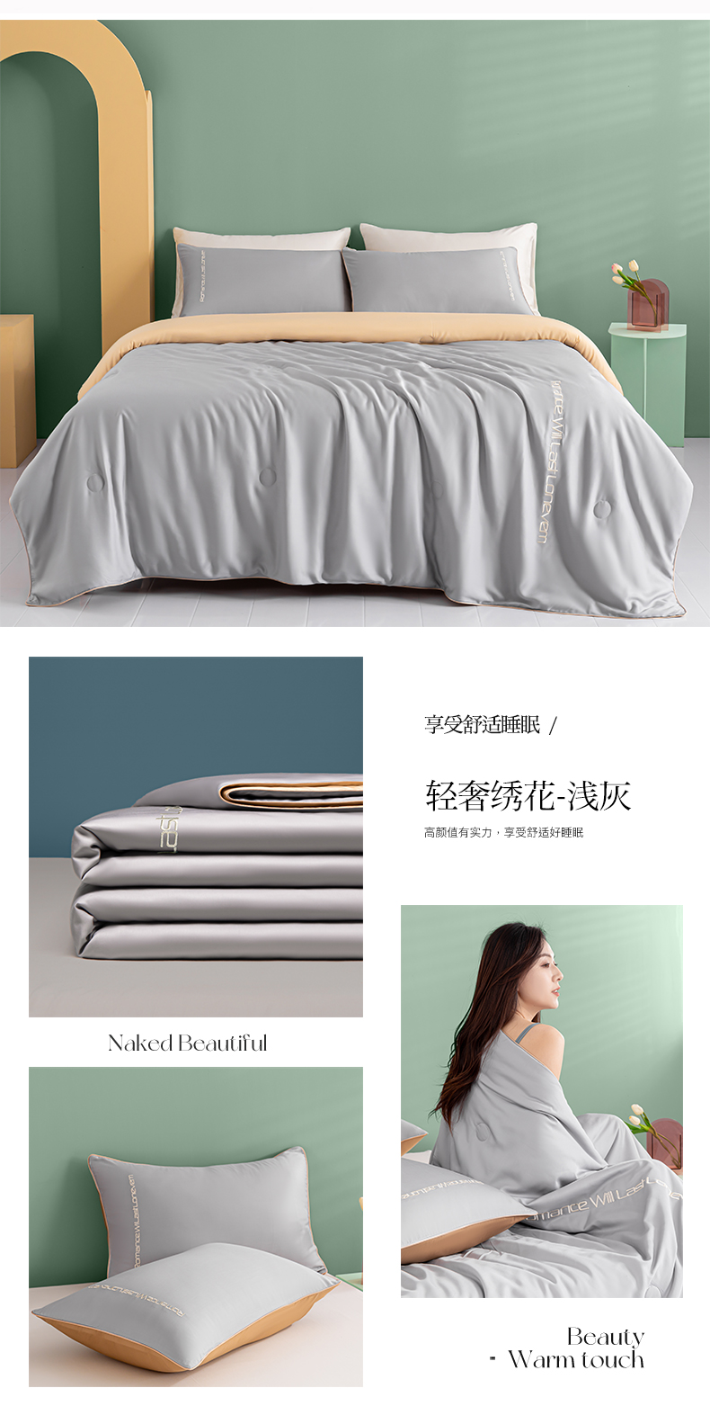 • 91家纺网 家纺一手货源 找家纺 子由家居 2025新款水洗真丝轻奢绣花系列夏被四件套 轻奢绣花-英伦灰