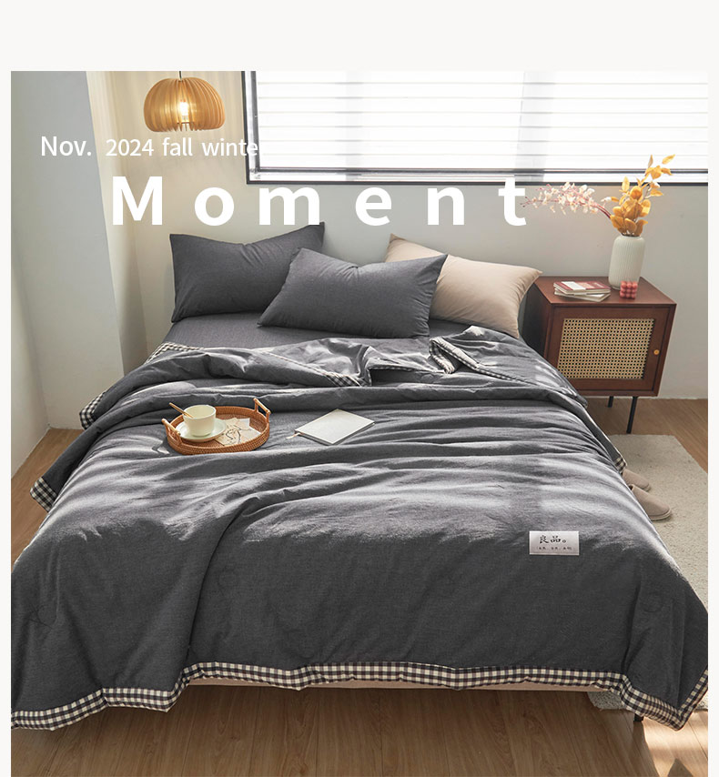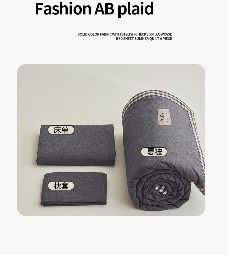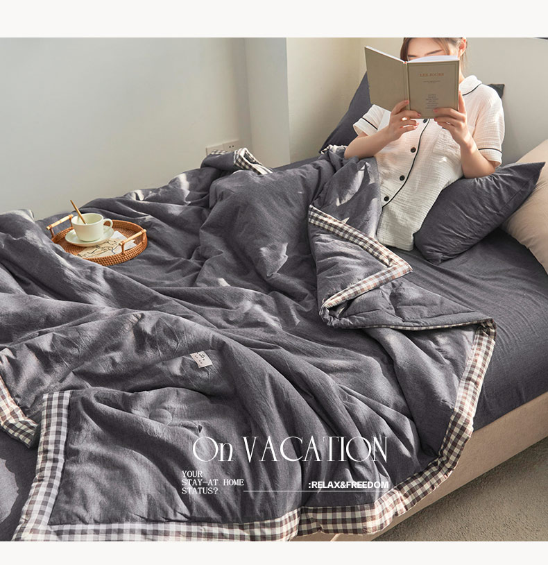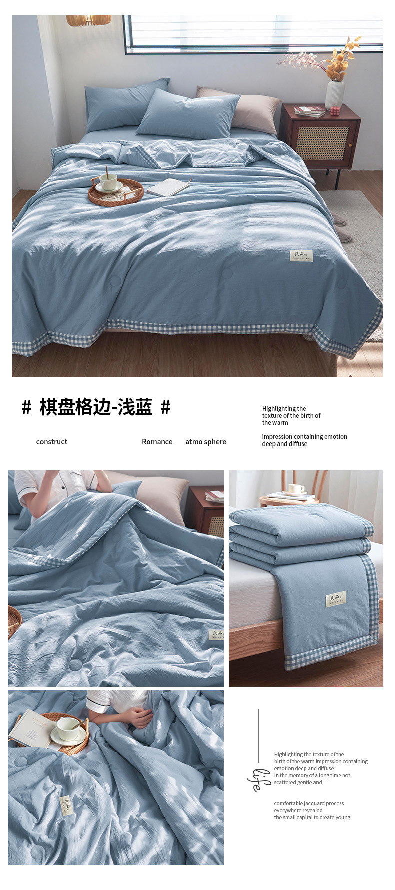 商品名称:子由家居 2025新款水洗棉棋盘格织标大豆纤维夏被被子被芯 棋盘格边夏被-暗灰