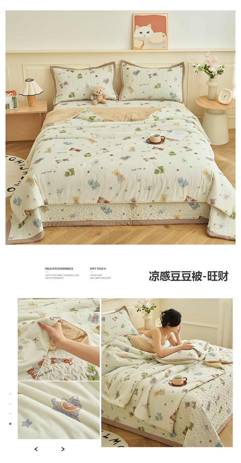 商品名称:子由家居 2025新款凉感丝豆豆夏被四件套 凉感豆豆被-旺财