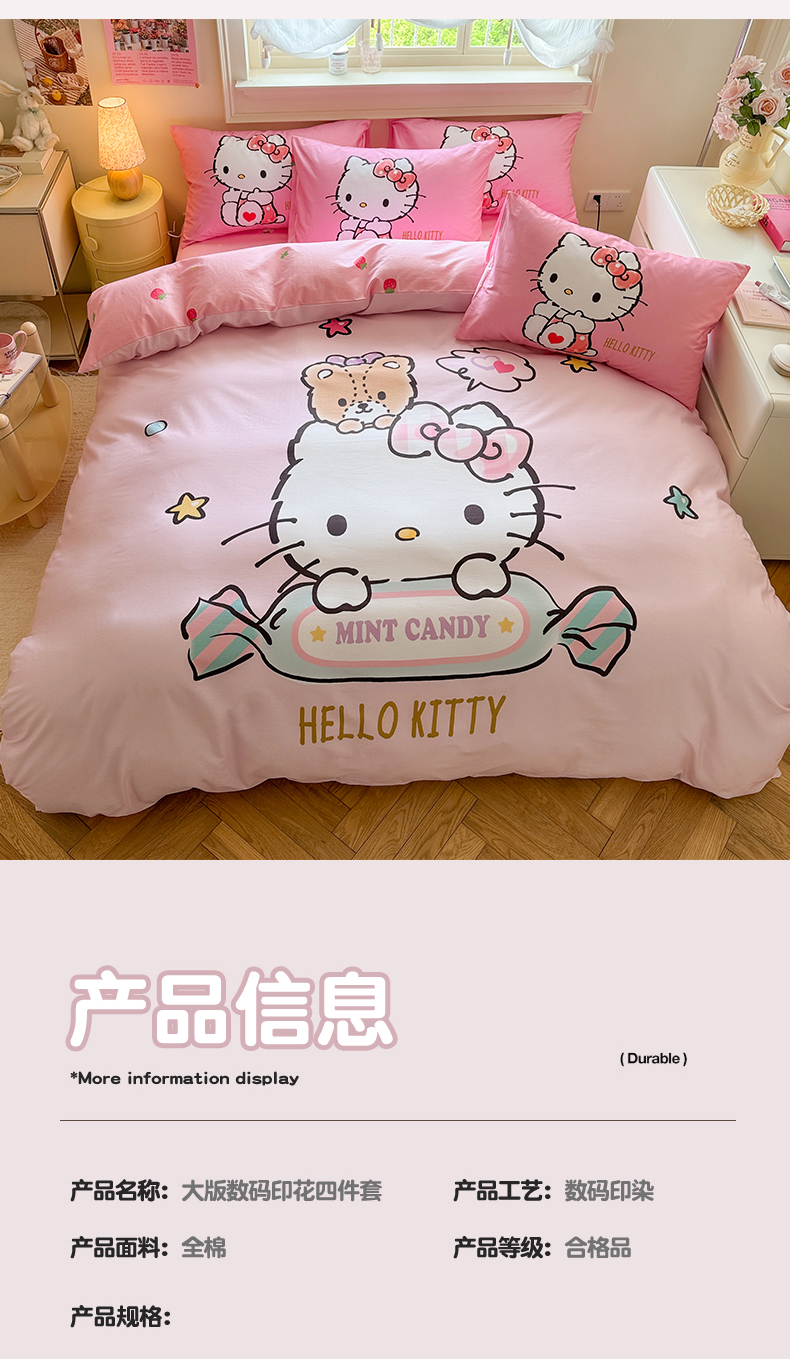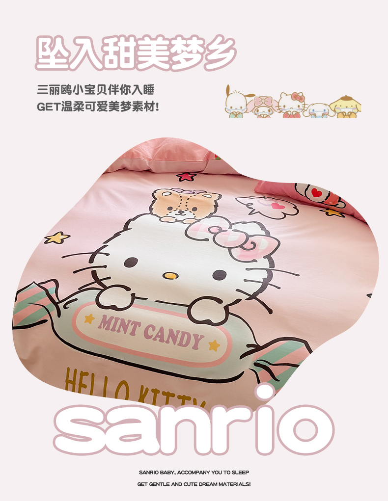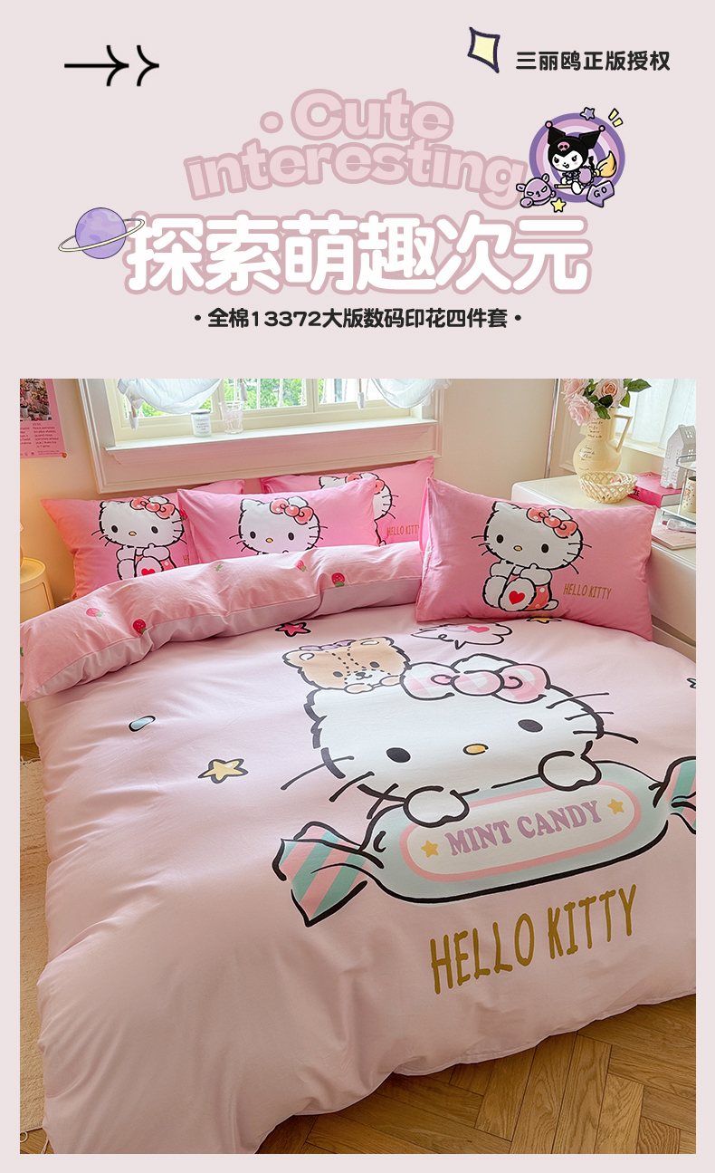 当前位置: 91家纺网 > 商品网购 > 床品套件 > 四件套 > 全棉普通四件套 > 2025新款大版三丽鸥全棉数码印花四件套【含防伪标】 糖果kt
