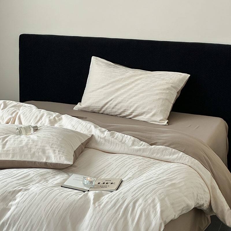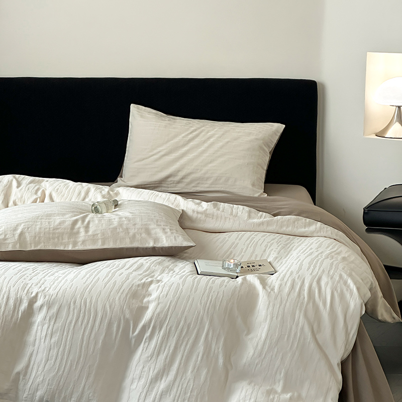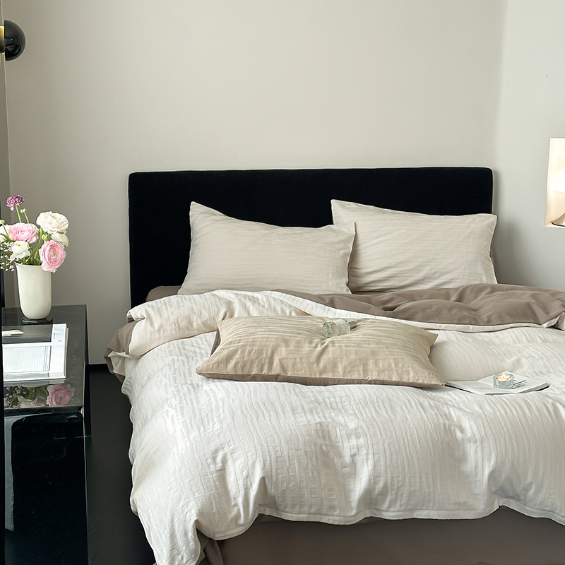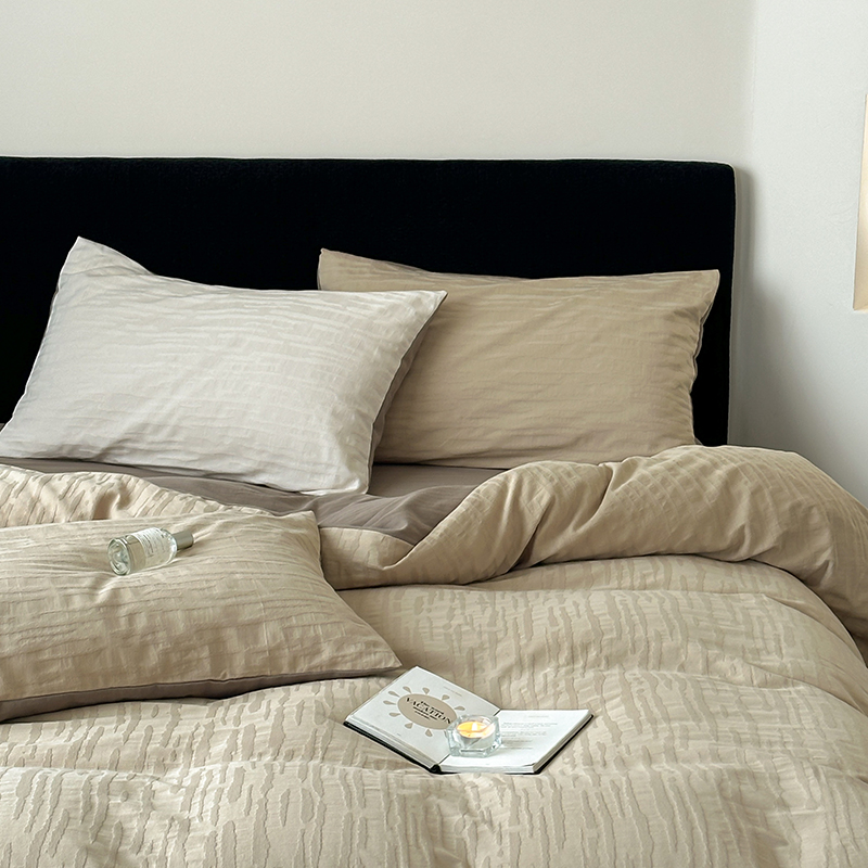 (总)梦享生活家居 2025新款全棉肌理纹提花四件套,灰黑色