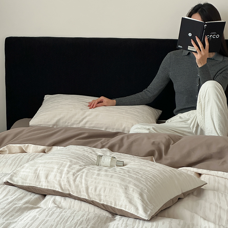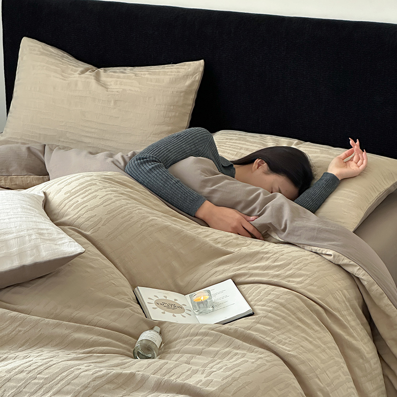 梦享生活家居 2025新款色织三层提花人字纹面料四件套-青春系列 恋青春米咖