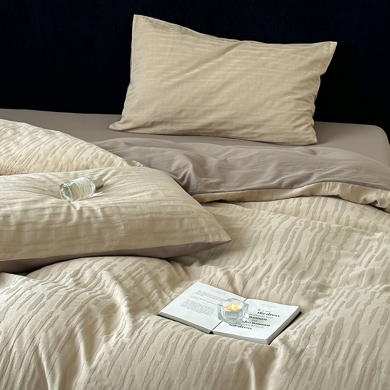 商品名称:梦享生活家居 2025新款色织三层提花人字纹面料四件套-青春系列 恋青春米咖