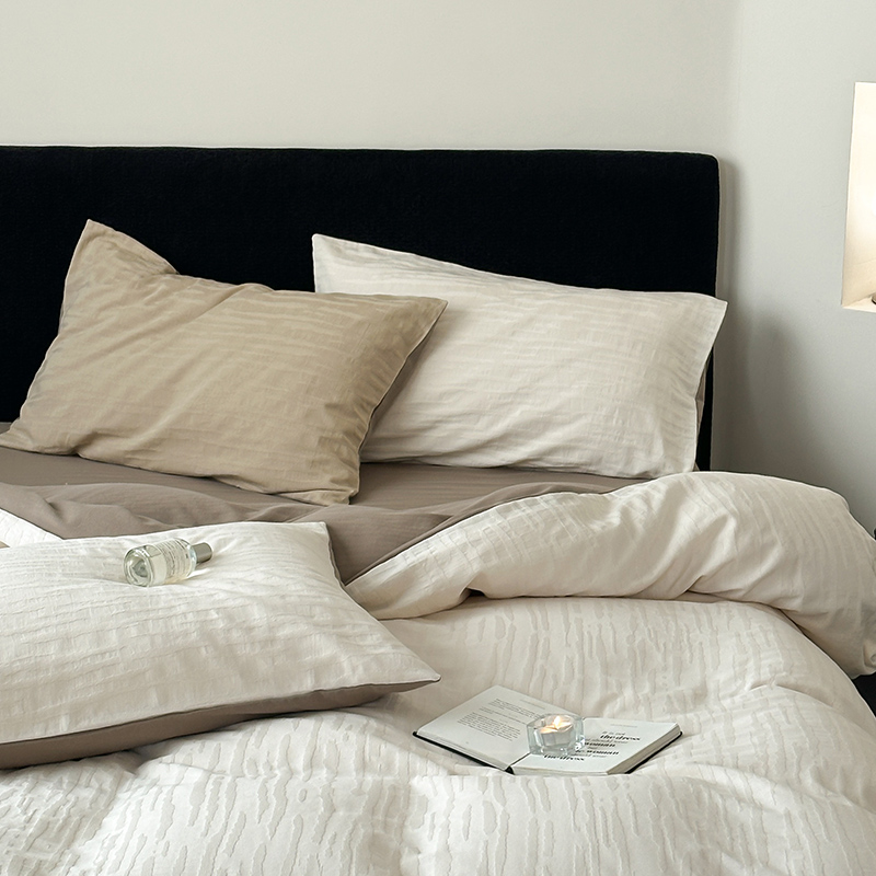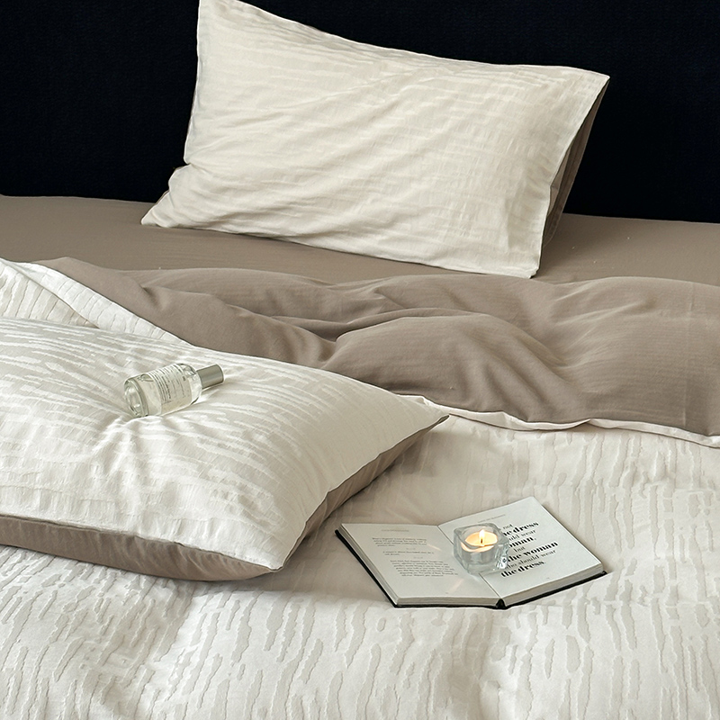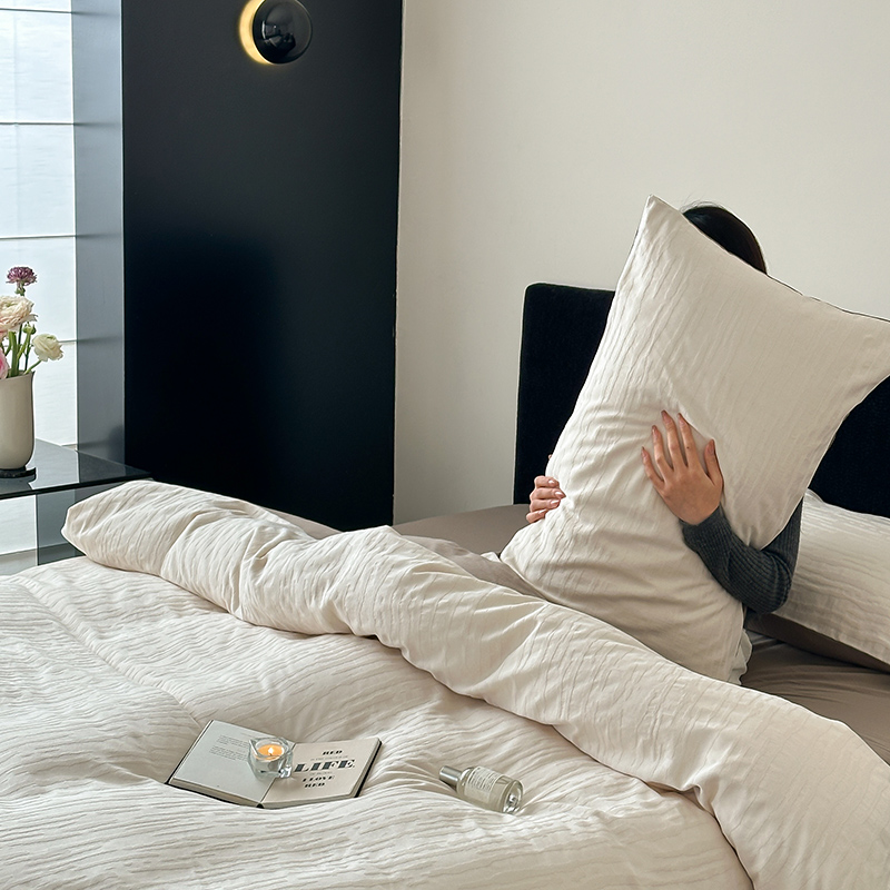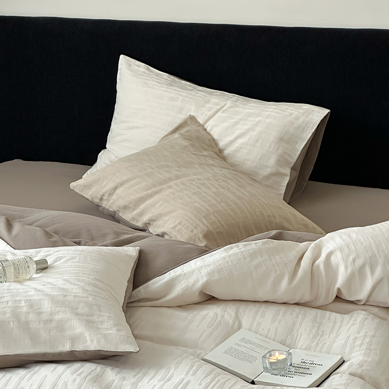 (总)梦享生活家居 2025新款白色全棉肌理纹提花四件套,白露,简云,流年,莫语,曲线