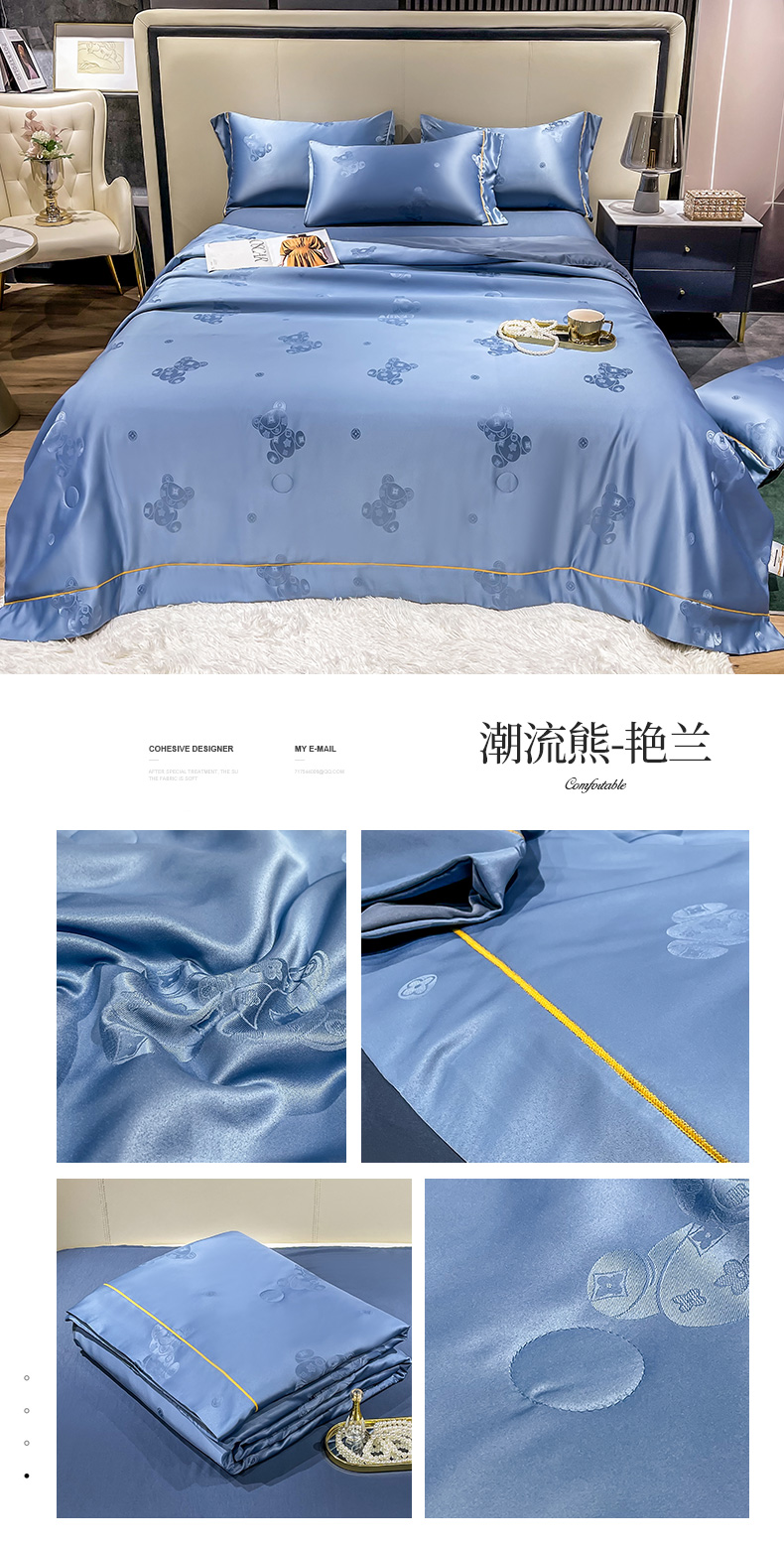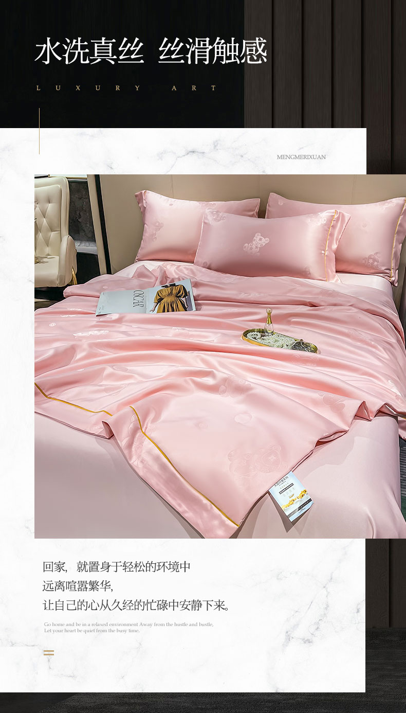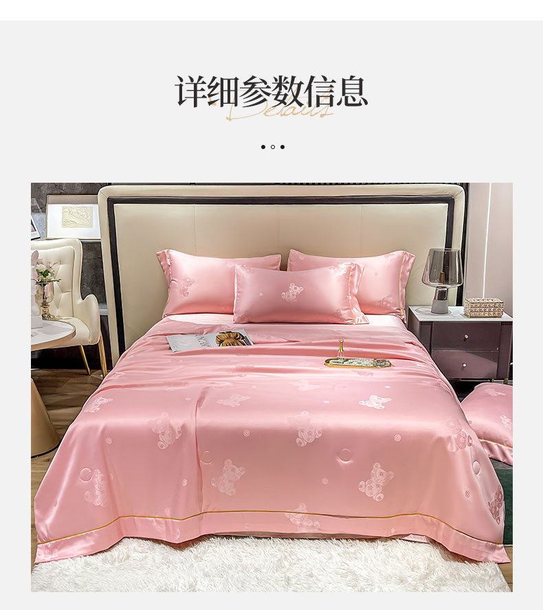 当前位置: 91家纺网 > 商品网购 > 床品套件 > 四件套 > 夏被四件套 > 经年 2025新款潮流熊60S贡缎提花水洗真丝冰丝天丝大豆夏被四件套直播爆款 潮流熊-粉玉