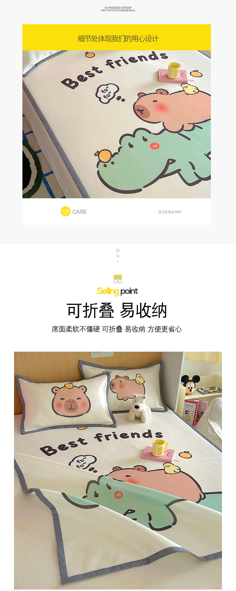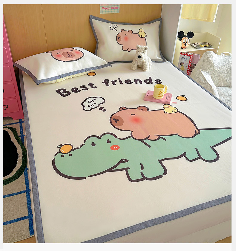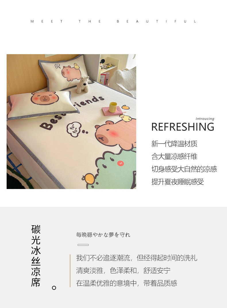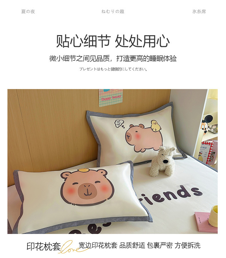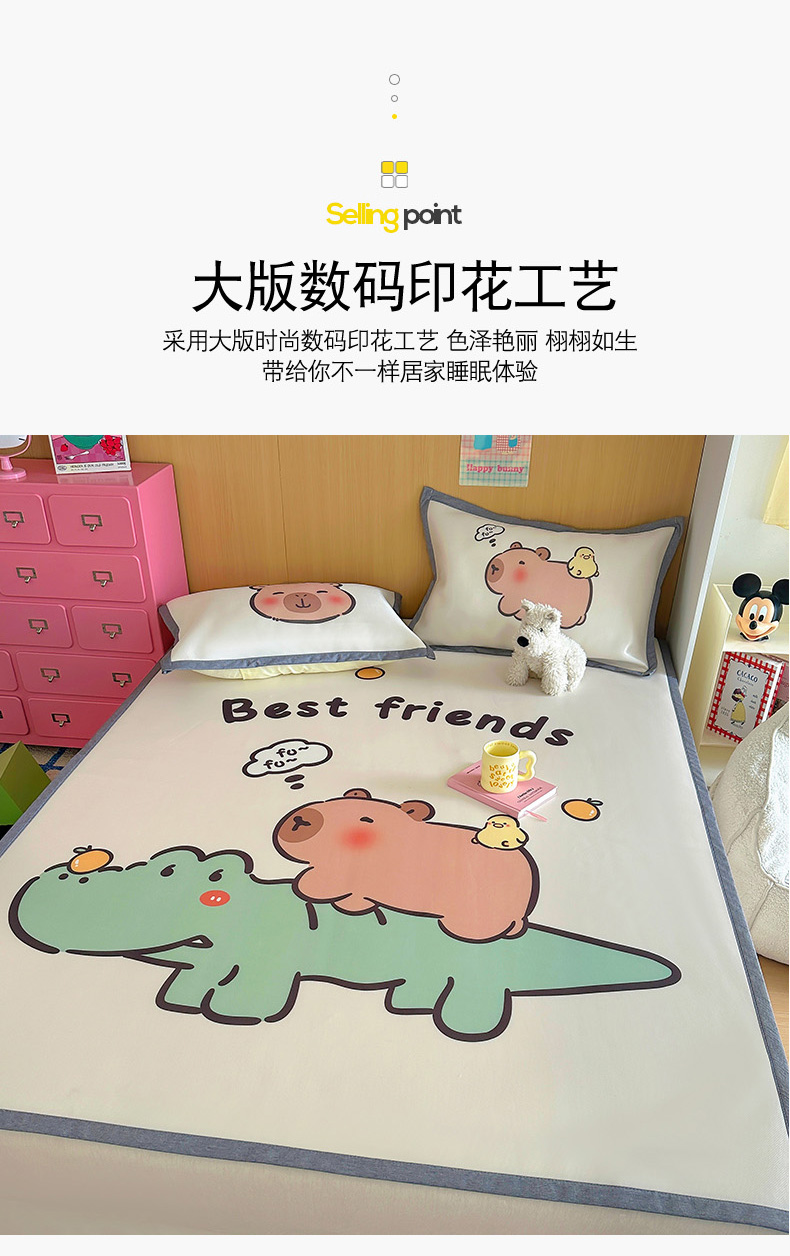 昊川家纺 2025新款大版数码印花碳光冰丝席 卡皮巴拉