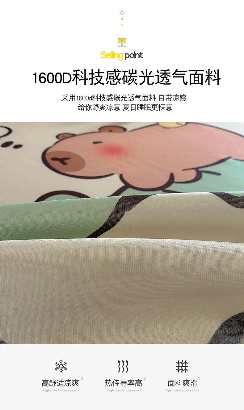 商品名称:昊川家纺 2025新款大版数码印花碳光冰丝席 卡皮巴拉