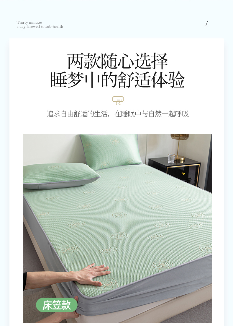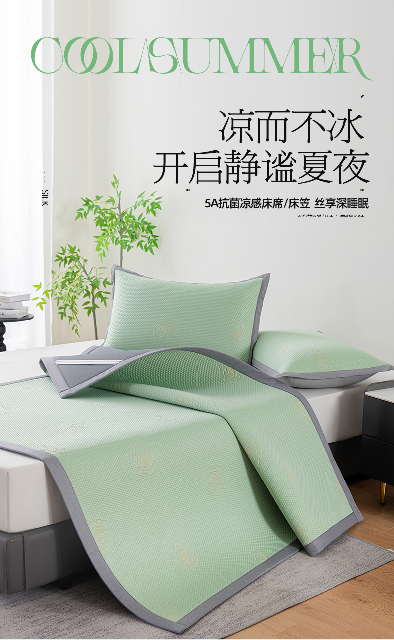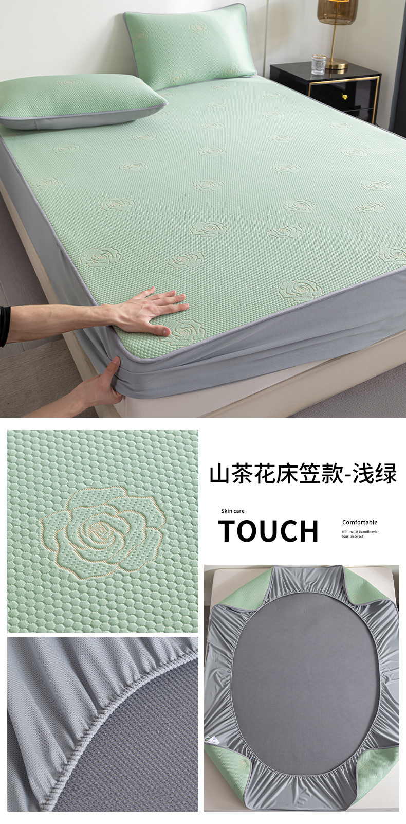 2025新款山茶花系列冰豆豆凉席 山茶花床笠款-绿