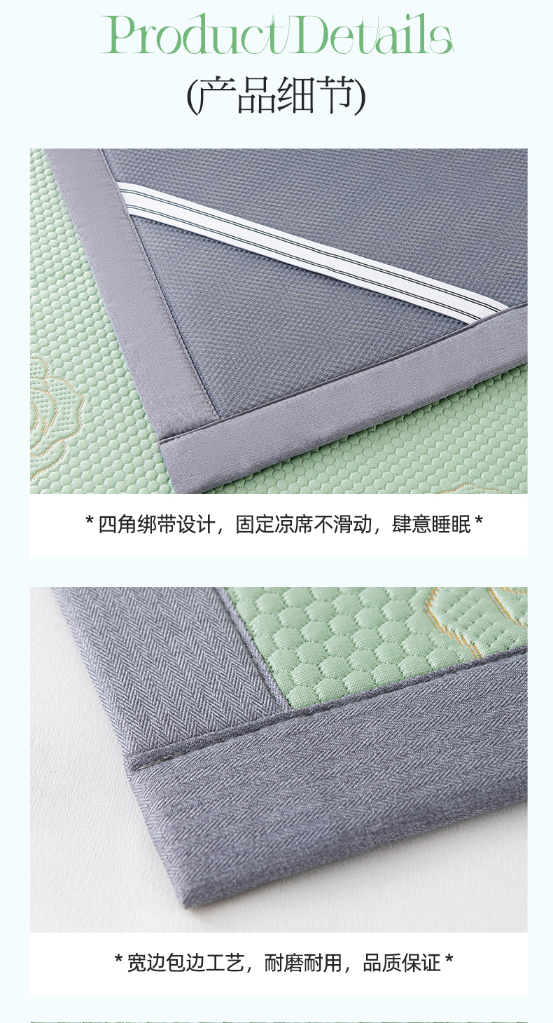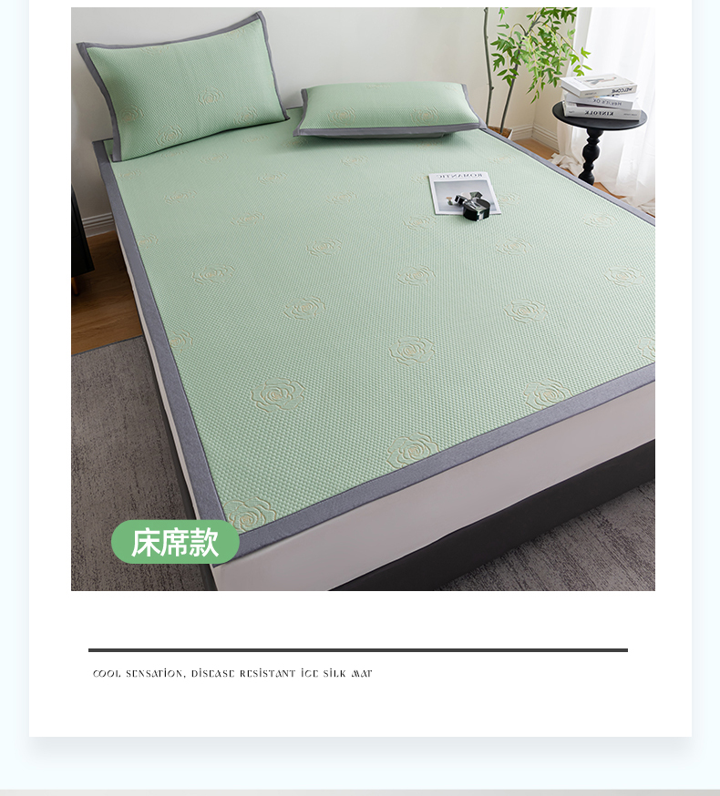 商品名称:2025新款山茶花系列冰豆豆凉席 山茶花床笠款-绿