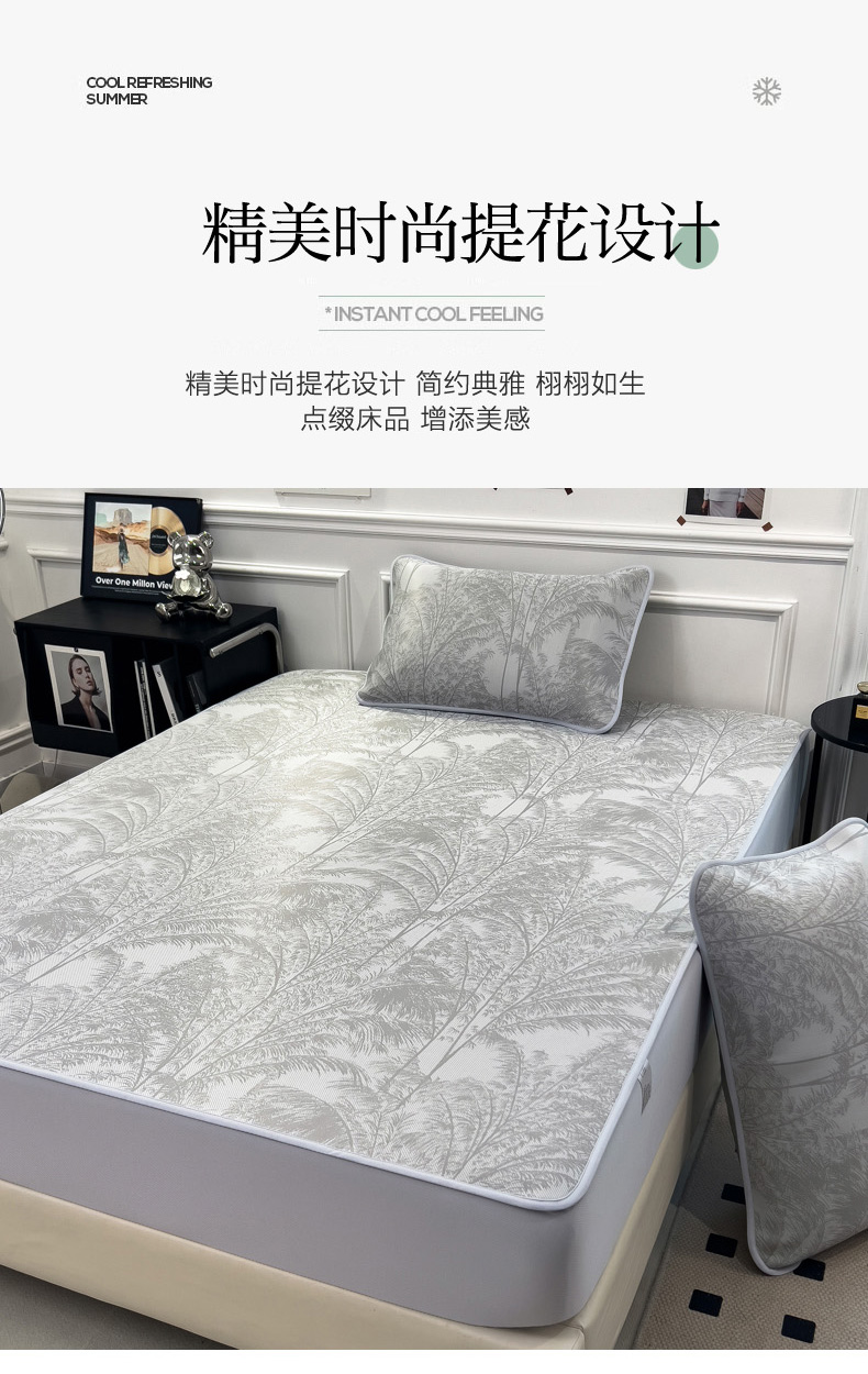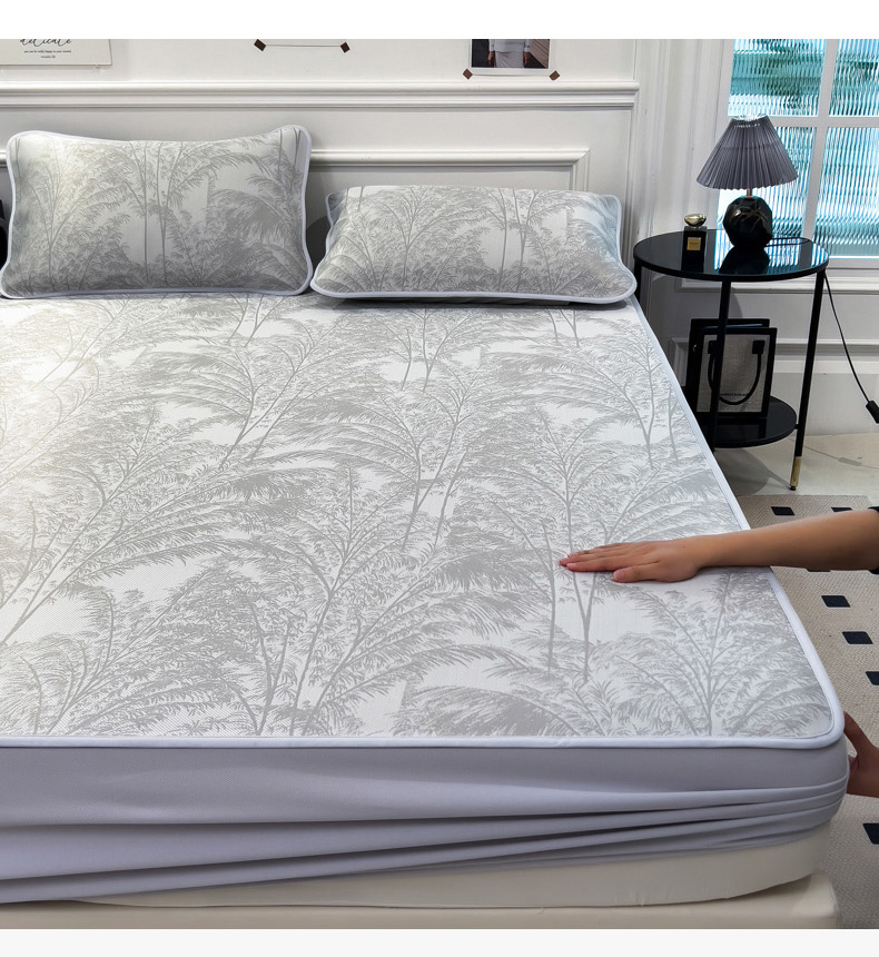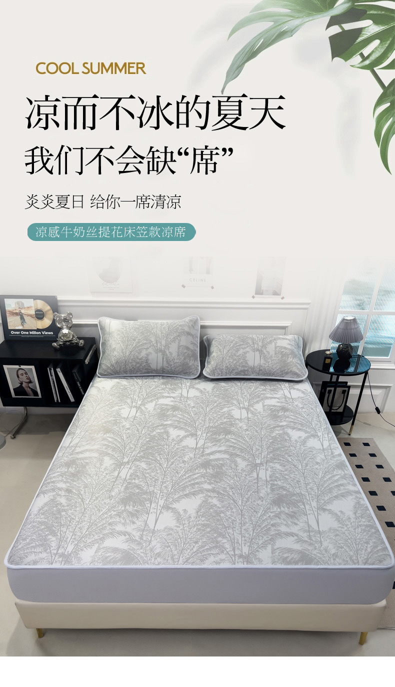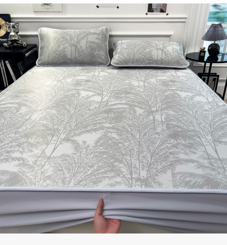 2025新款牛奶丝提花凉感凉席系列床笠款 森林奇境灰床笠款