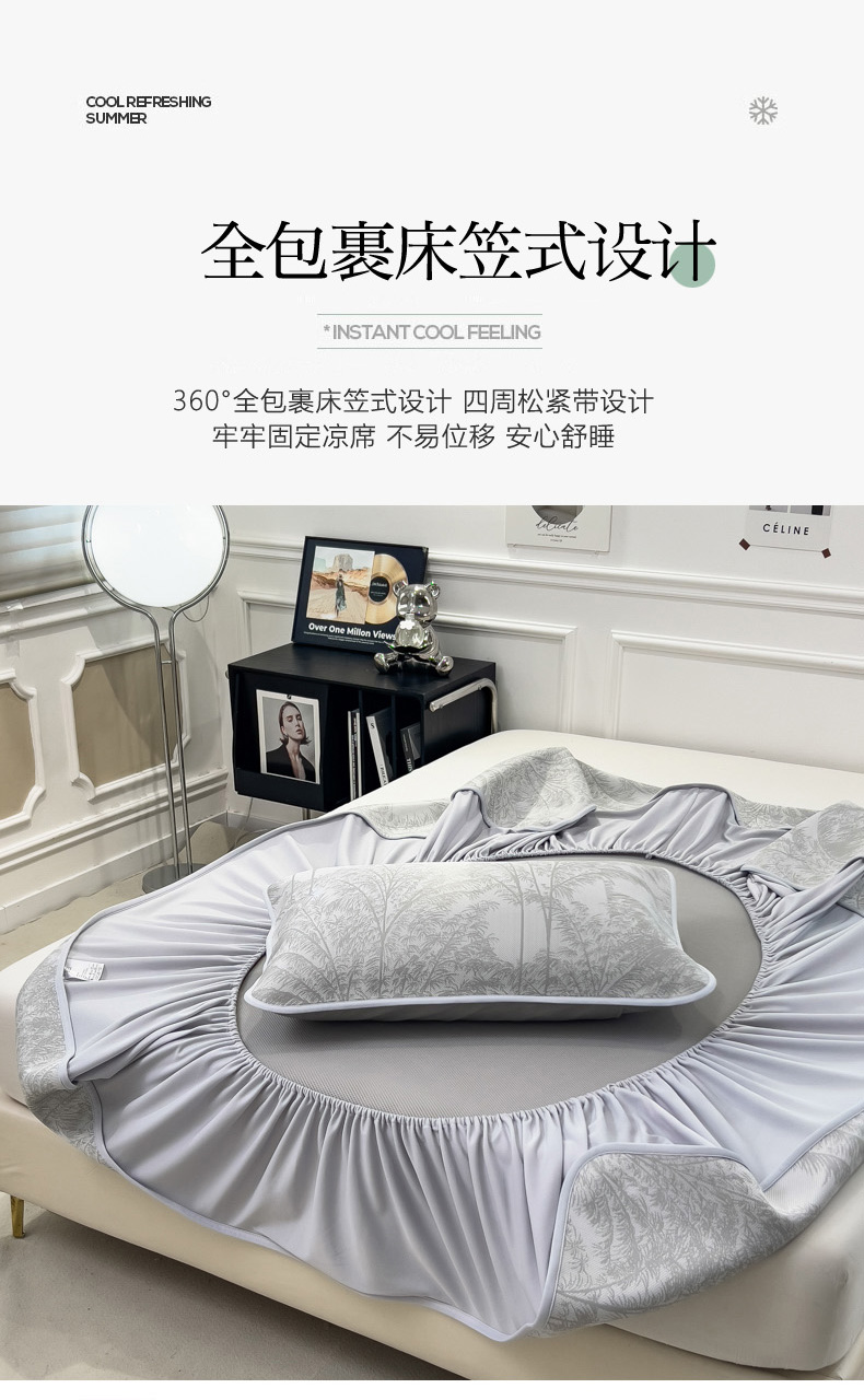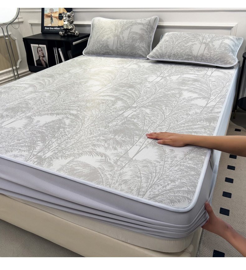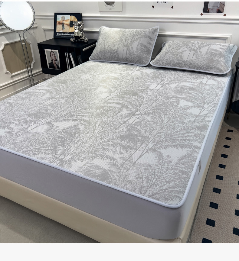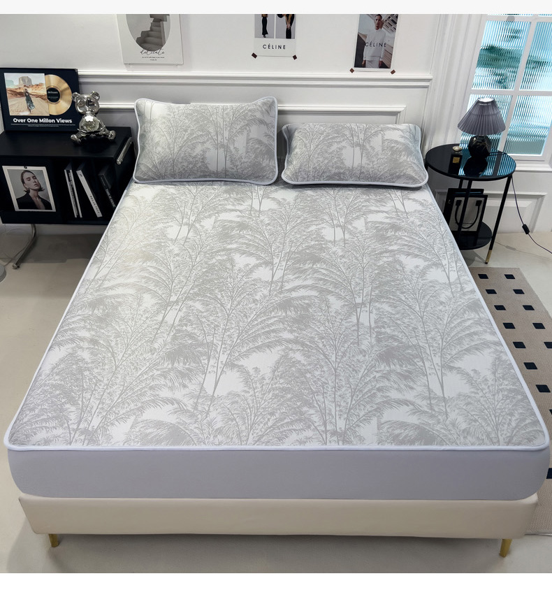 2025新款牛奶丝提花凉感凉席系列床笠款 森林奇境灰床笠款