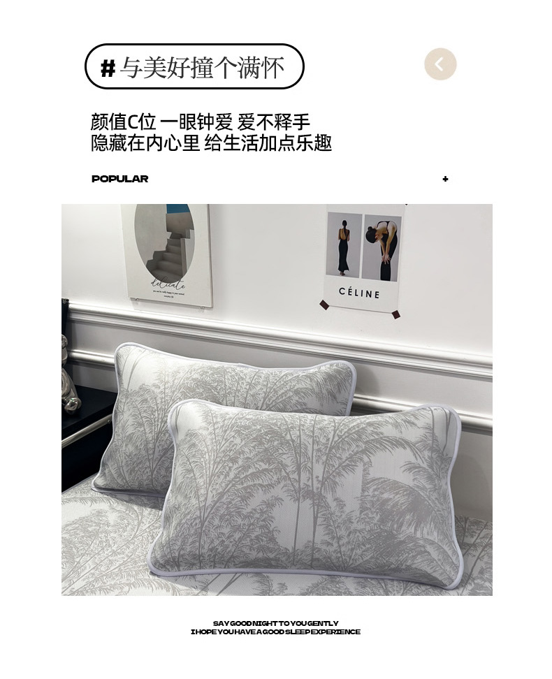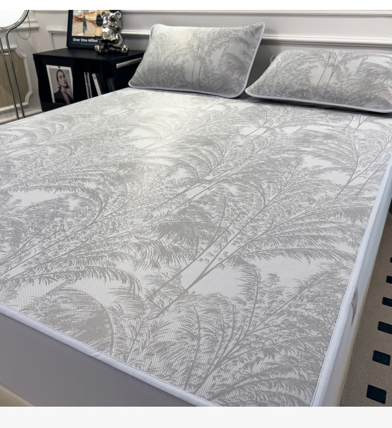 商品名称:2025新款牛奶丝提花凉感凉席系列床笠款 森林奇境灰床笠款