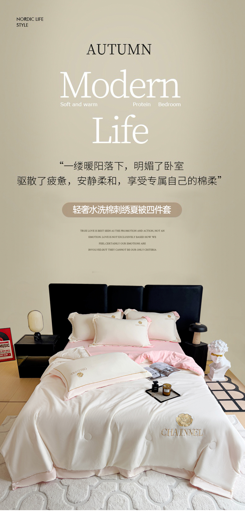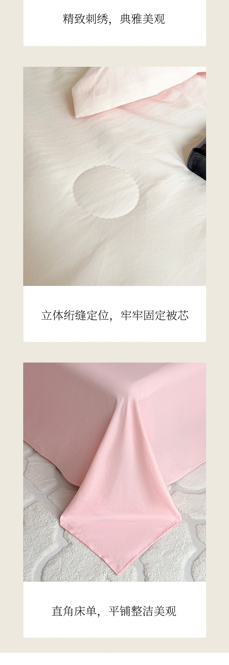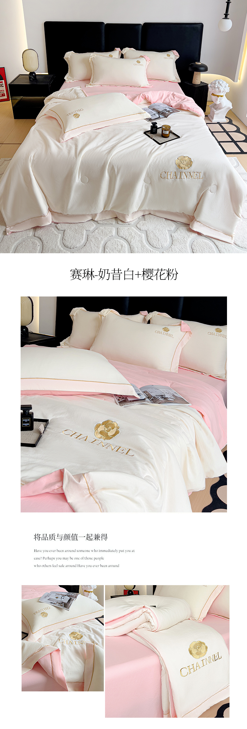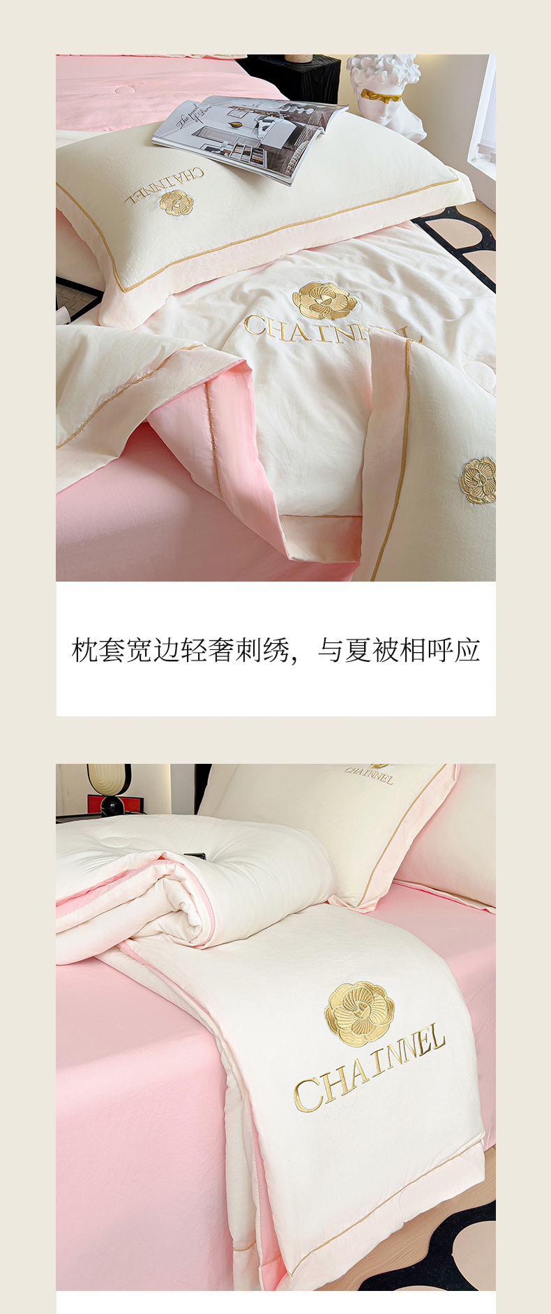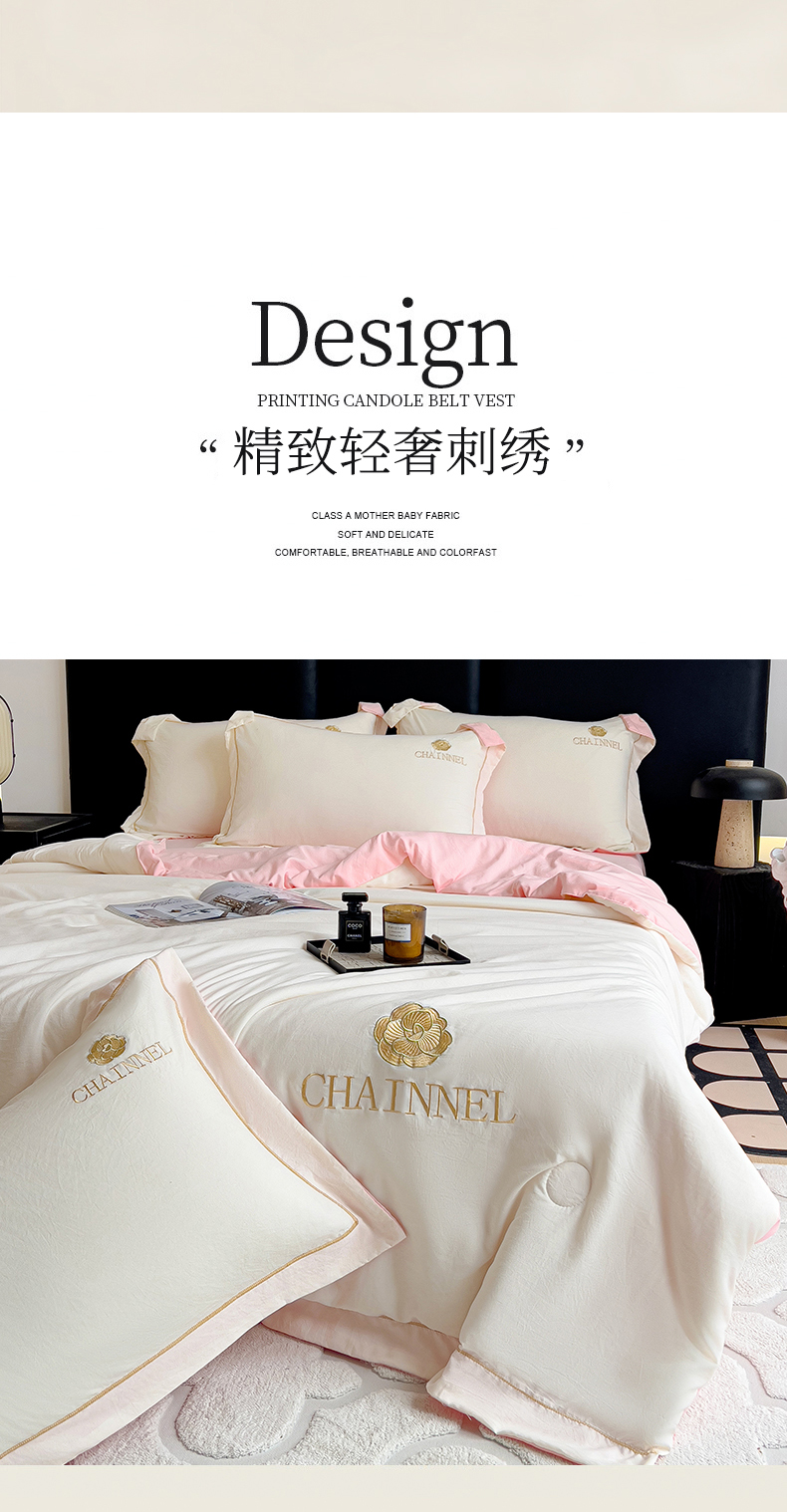当前位置: 91家纺网 > 商品网购 > 床品套件 > 四件套 > 夏被四件套 > 灰鲸 2025新款轻奢赛琳水洗棉刺绣夏被四件套系列 赛琳-奶昔白+樱花粉