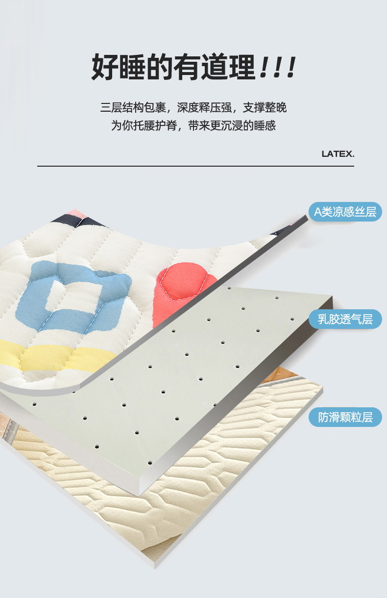 (总)2025新款A类针织乳胶优净丝记忆海绵学生床垫,字母白-灰,字母白-蓝,字母灰,字母蓝-灰