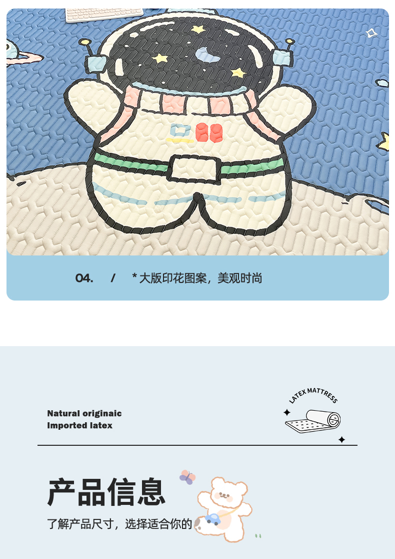 商品名称:布卢姆床垫 2025新款A类大版数码凉感丝乳胶凉席 宇航员