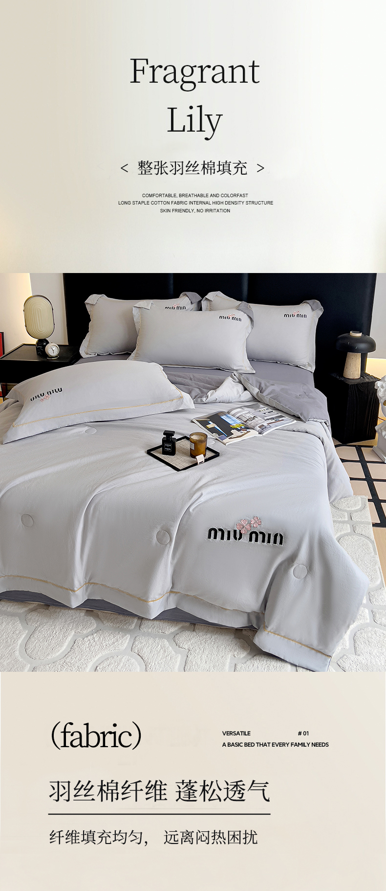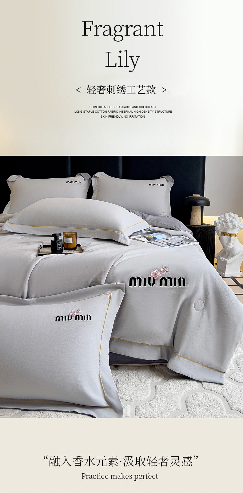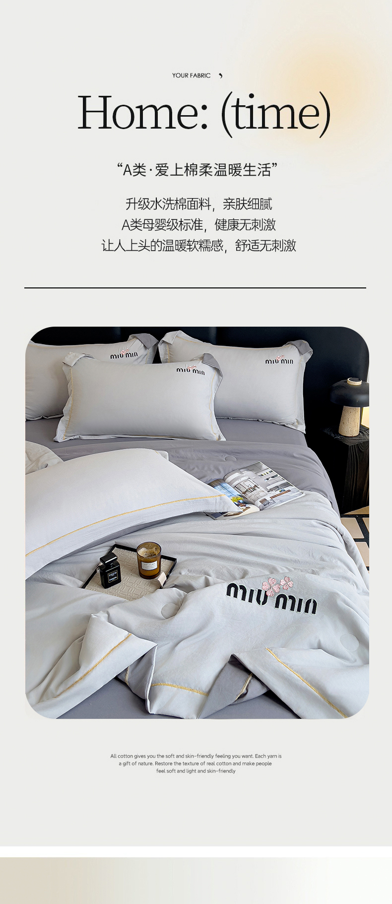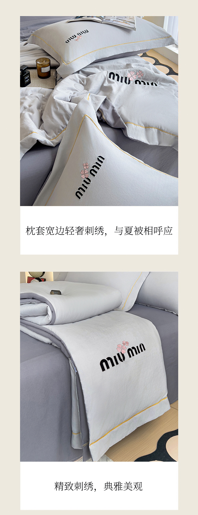 当前位置: 91家纺网 > 商品网购 > 床品套件 > 四件套 > 夏被四件套 > 灰鲸 2025新款轻奢miumin刺绣水洗棉夏被四件套系列 miumin-纳多灰+山灰