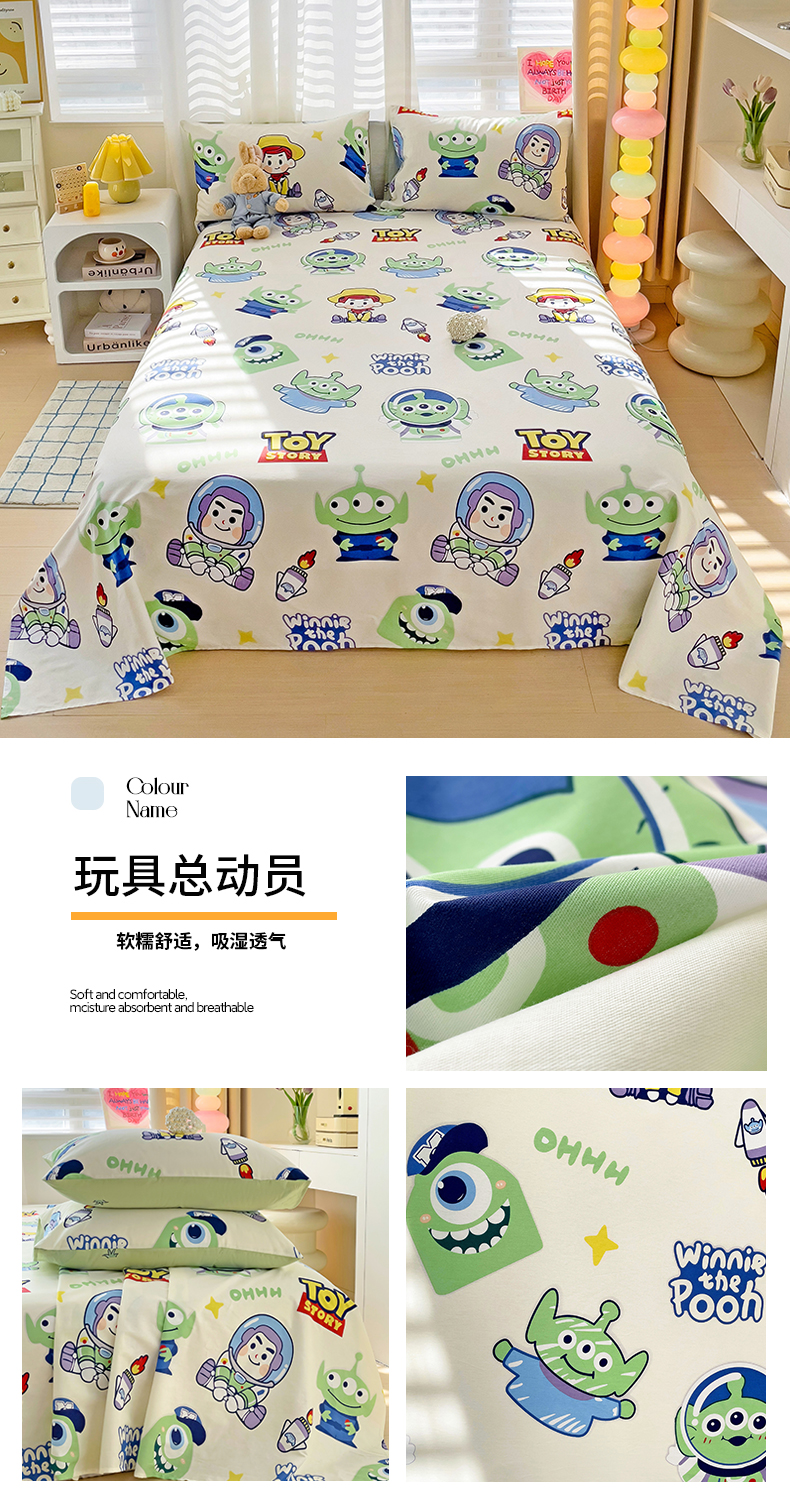 • 91家纺网 家纺一手货源 找家纺 名兮家居 2025新款全棉纯棉经典小版奥特曼三丽鸥床单【含防伪标】 玩具总动员