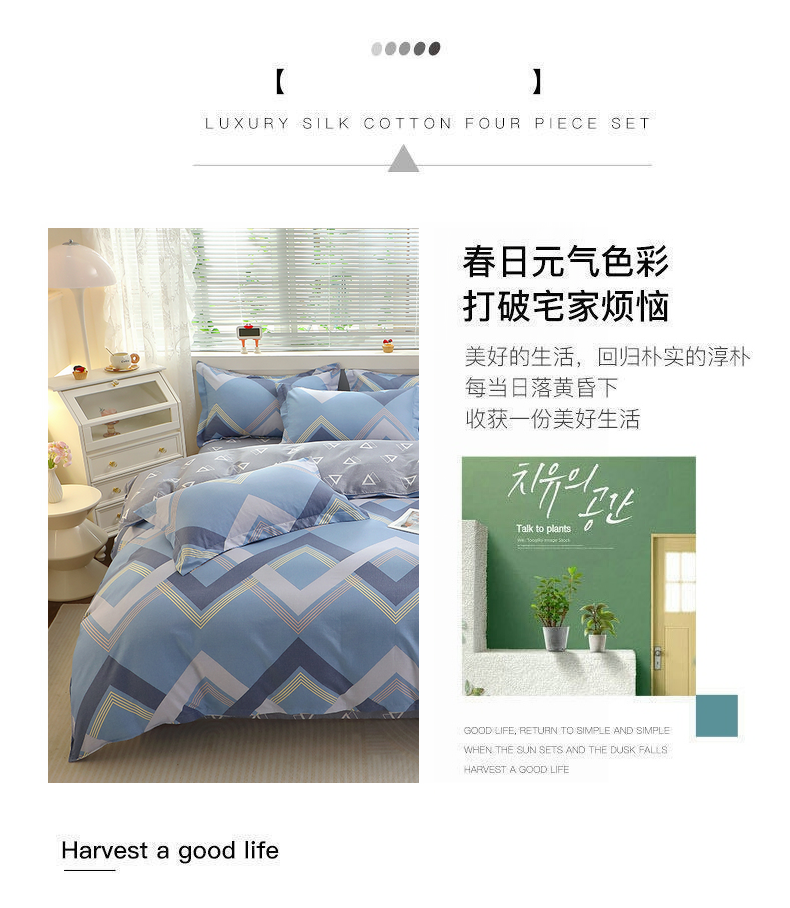 1.8m四件套(被套2*2.3床单2.3*2.5枕套48*74*2) | ¥80.00 |