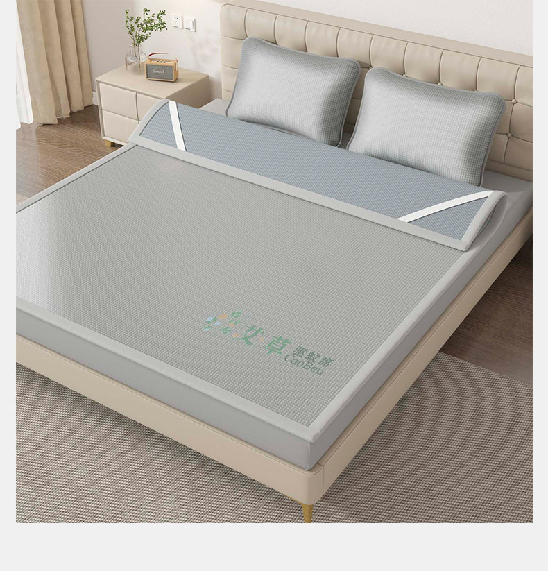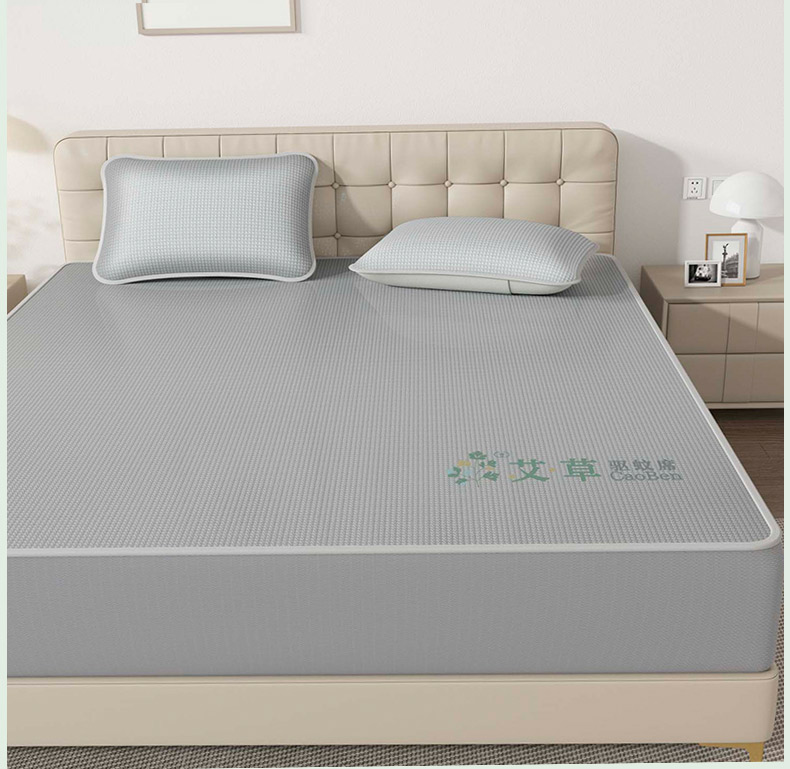福来临家纺 2025新款艾草驱蚊席三明治款-床席款-床笠款 灰床笠款