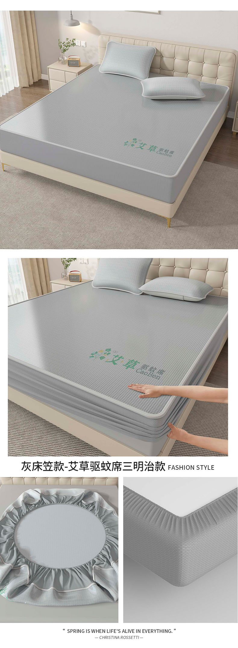 商品名称:福来临家纺 2025新款艾草驱蚊席三明治款-床席款-床笠款 灰床笠款
