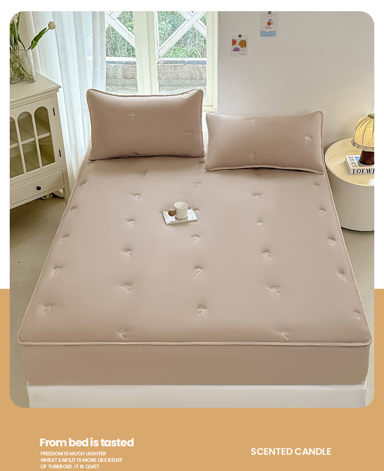 • 91家纺网 家纺一手货源 找家纺  2025新款A类亲肤大豆棉刺绣夹棉床笠床褥学生床垫 银杏叶驼