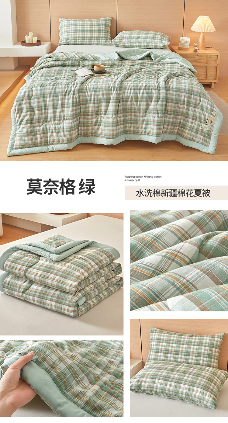 商品名称:易博家纺 2025新款格子纯色水洗棉无印风百分百新疆棉花夏被夏凉被被子被芯 莫奈格 绿