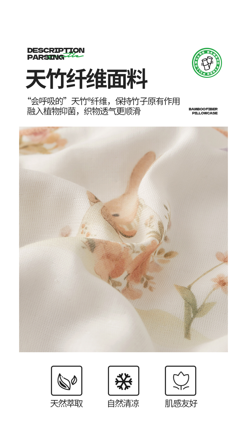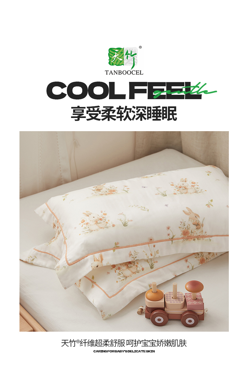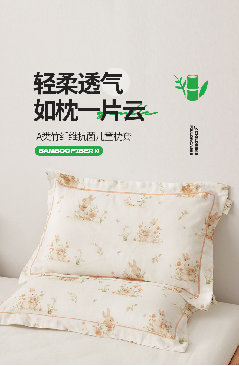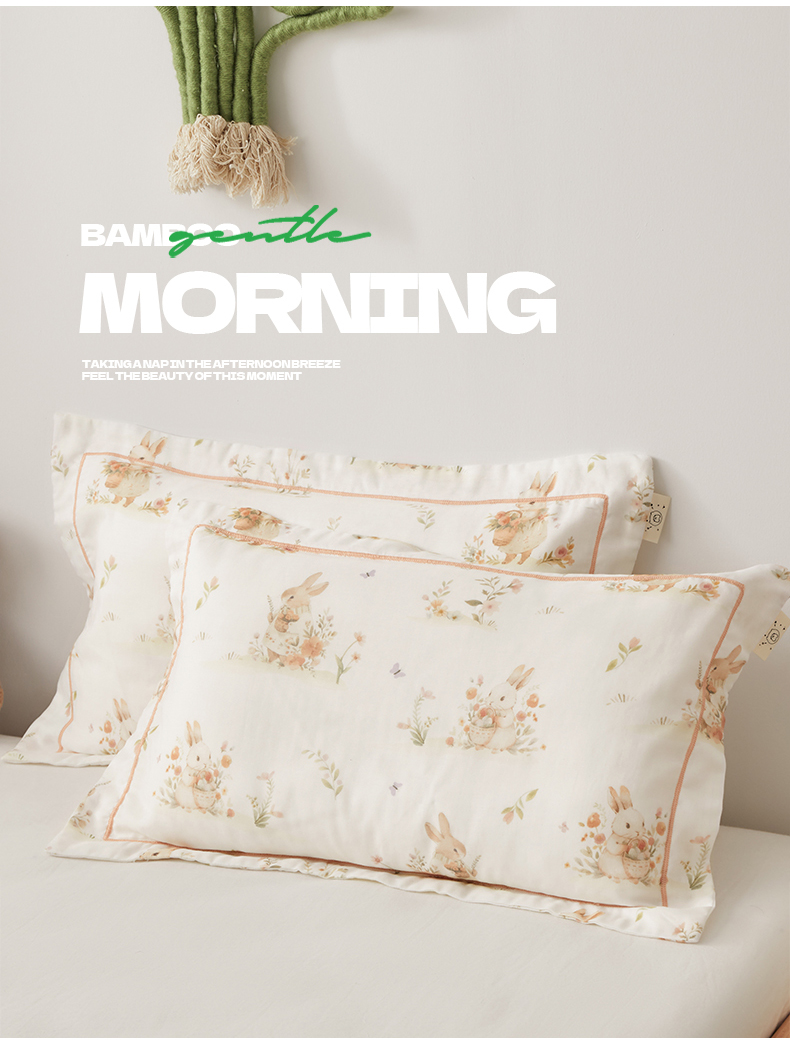 商品名称:荷马之梦 2025新款天竹系列—A类原创手绘风天竹纤维儿童枕套 春日郊游