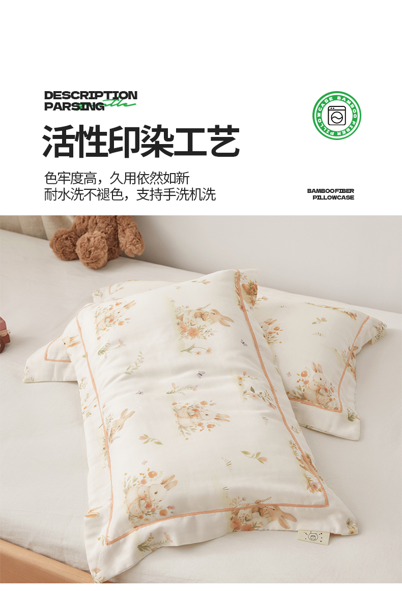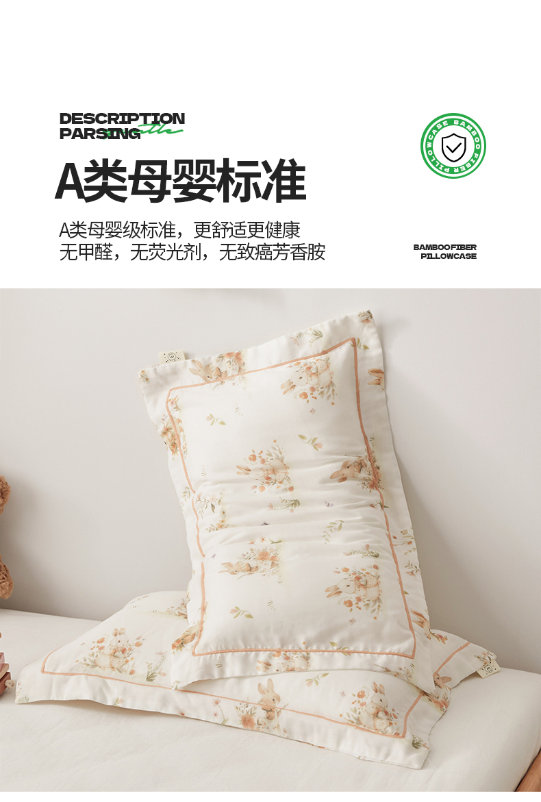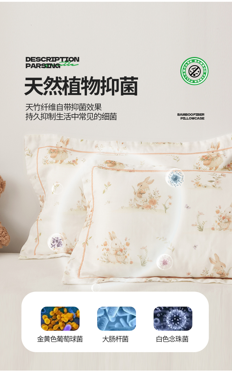 商品名称:荷马之梦 2025新款天竹系列—A类原创手绘风天竹纤维儿童枕套 春日郊游