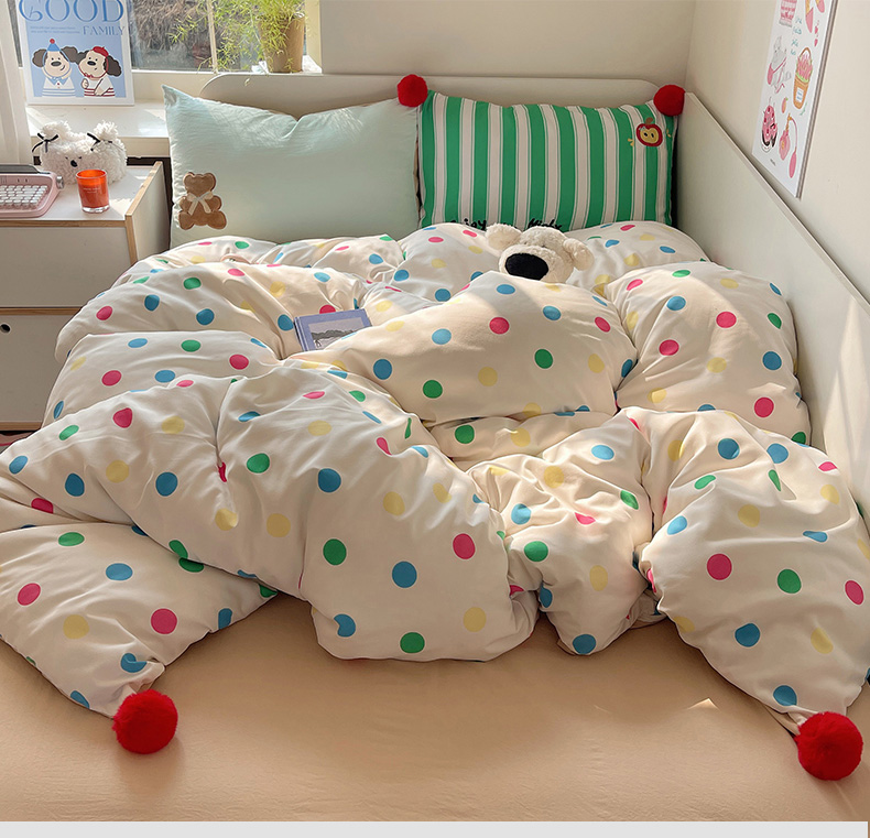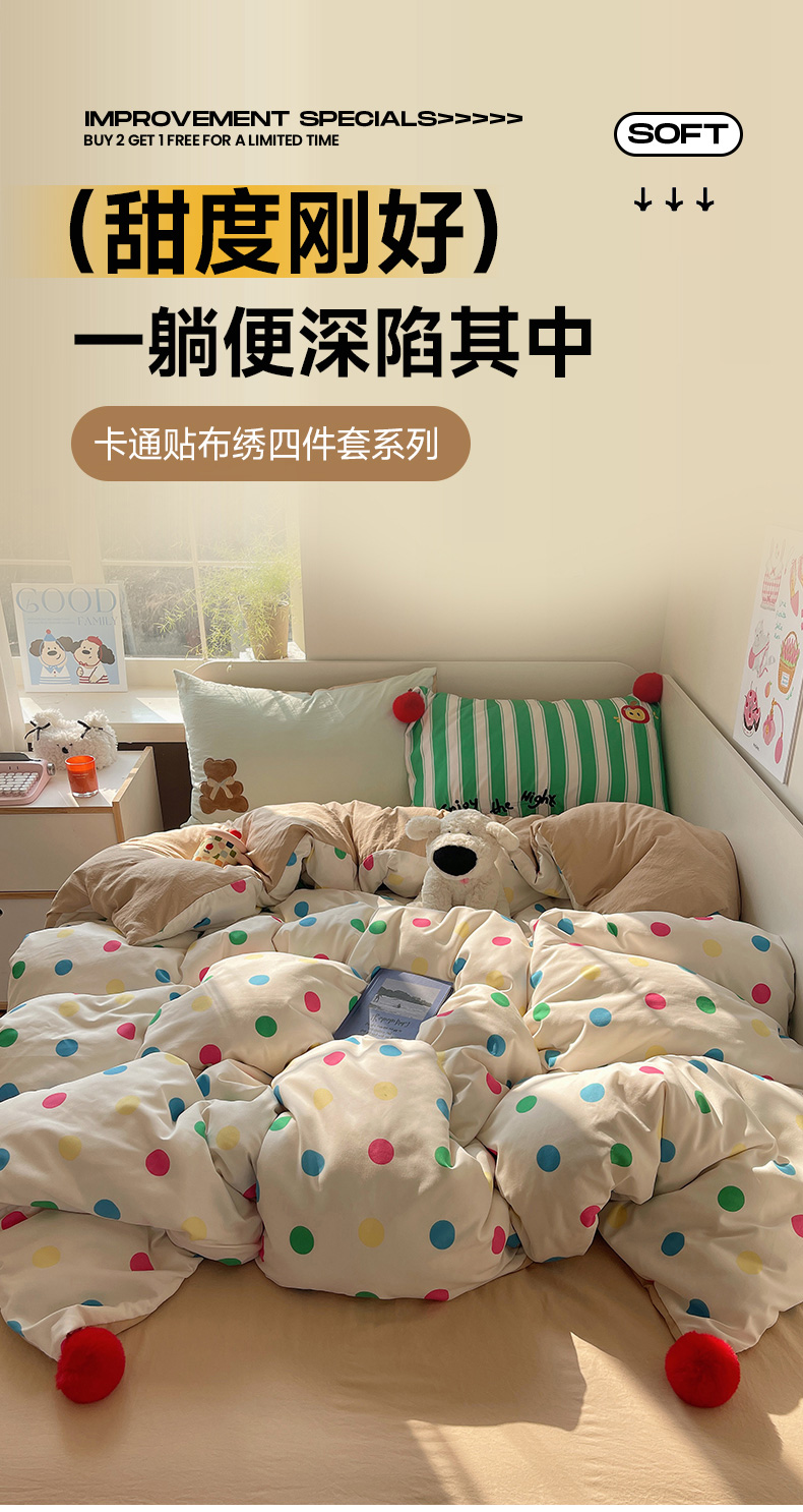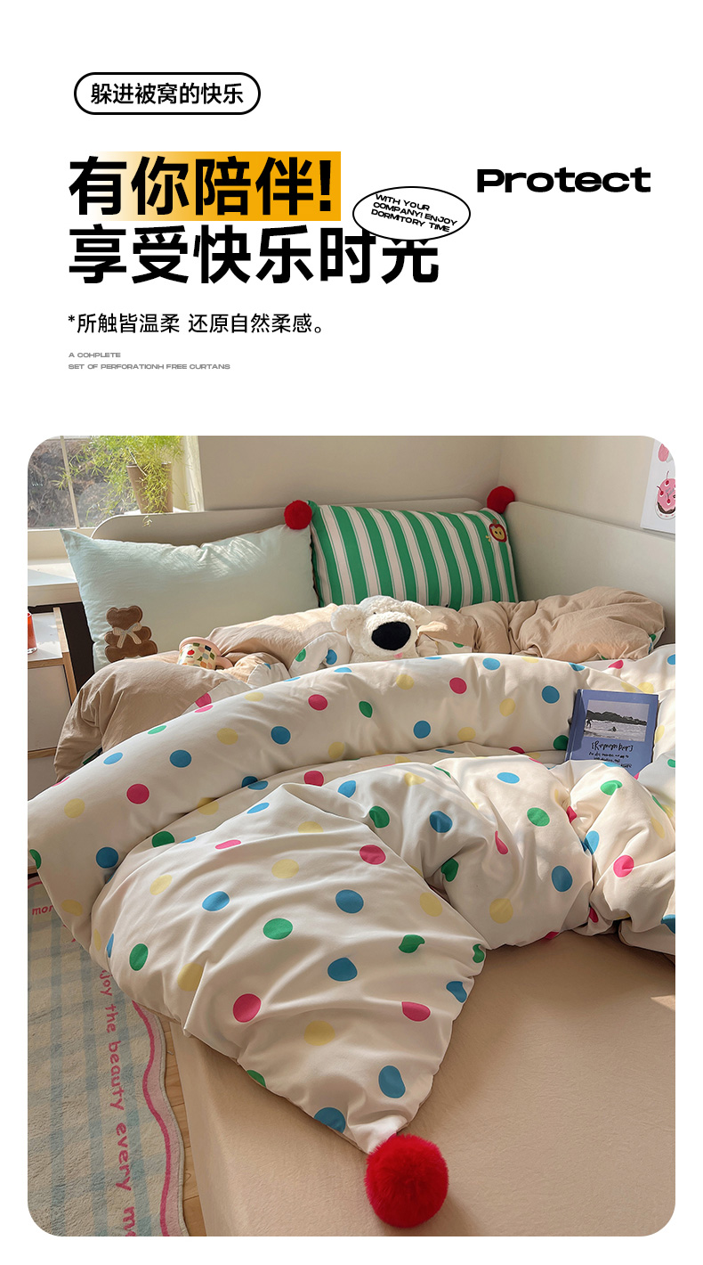 当前位置: 91家纺网 > 商品网购 > 床品套件 > 四件套 > 水洗棉四件套 > 轻奢坊 2025新款软萌可爱韩系贴布绣毛球款水洗棉四件套 波点小熊