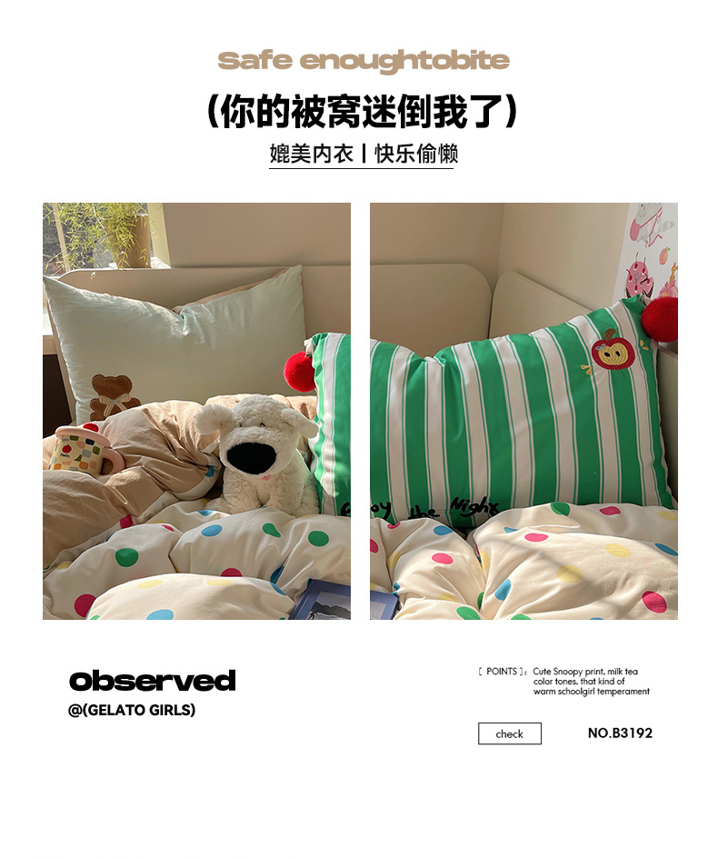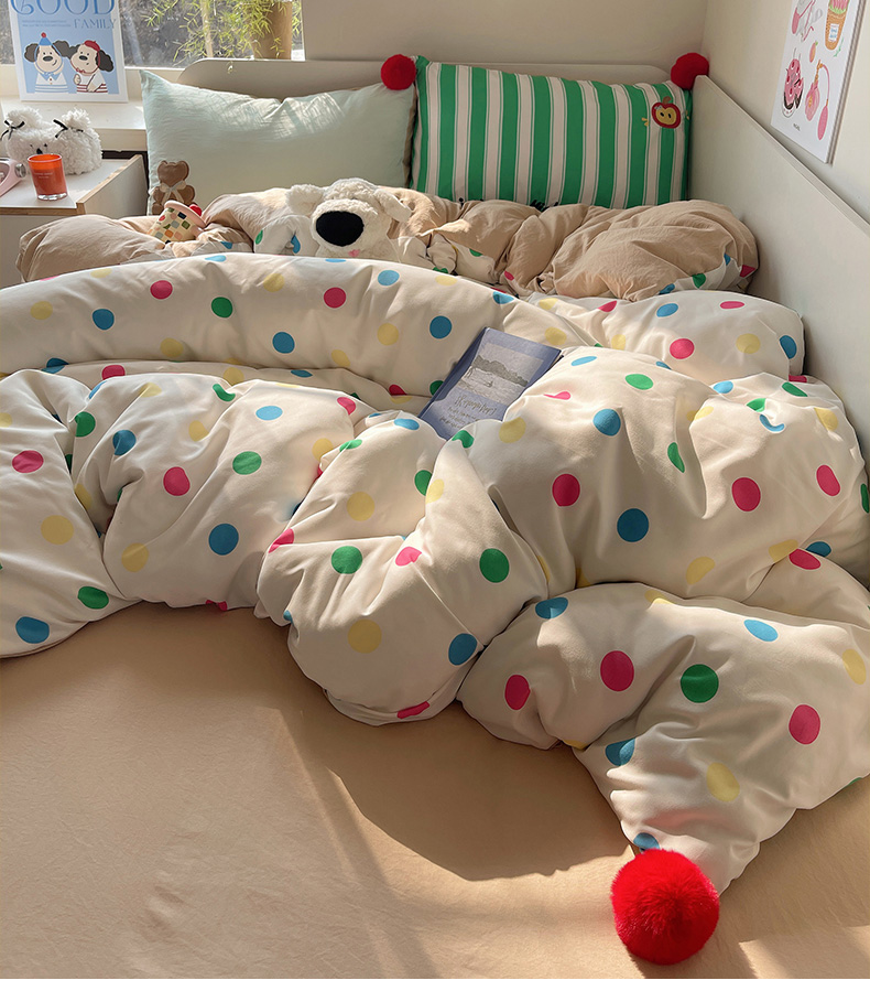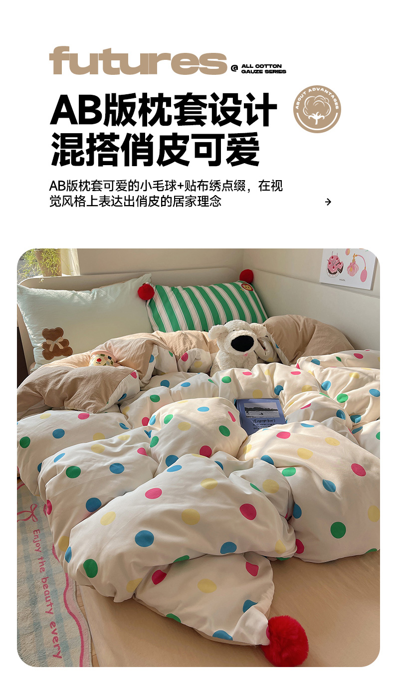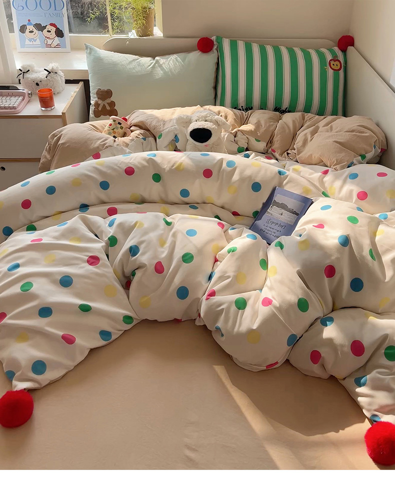 当前位置: 91家纺网 > 商品网购 > 床品套件 > 四件套 > 水洗棉四件套 > 轻奢坊 2025新款软萌可爱韩系贴布绣毛球款水洗棉四件套 波点小熊