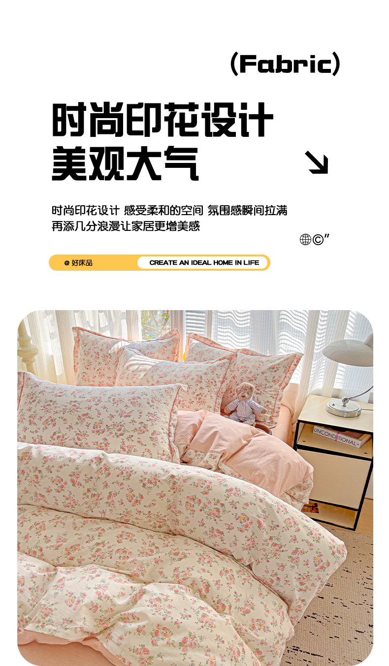 暖芯优选 2025新款小清新印花全棉磨毛四件套 芬迪,芬迪