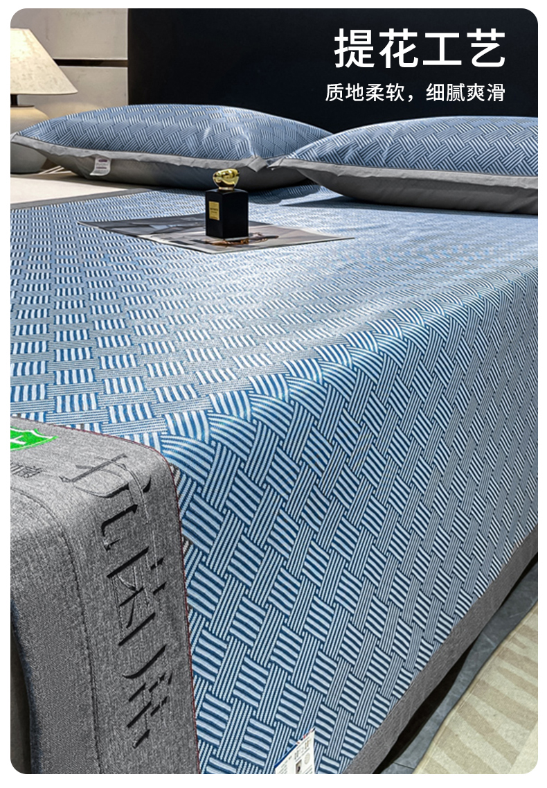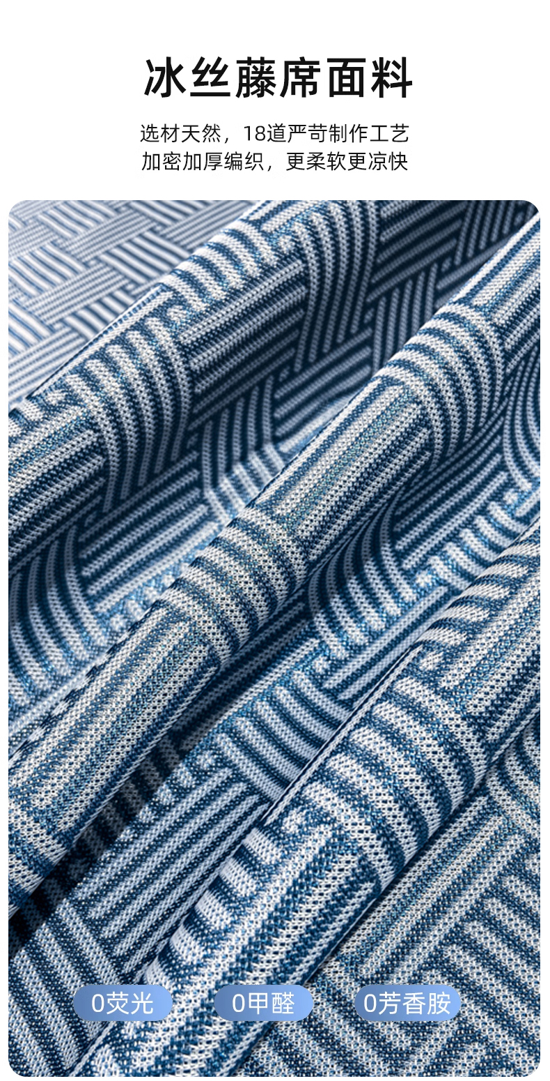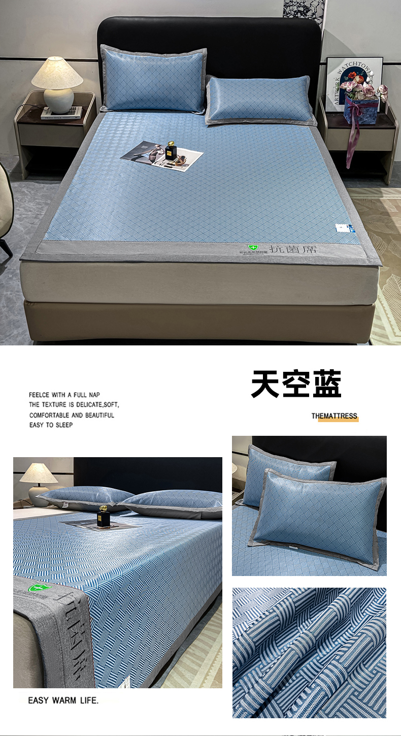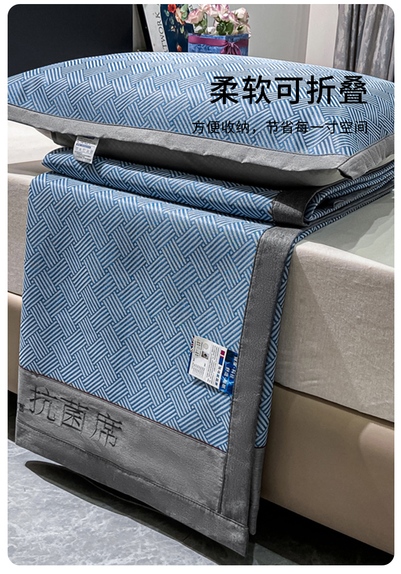 商品名称:念家居 2025新款凉感提花冰丝抗菌复合凉席可折叠冰丝席三件套 天空蓝