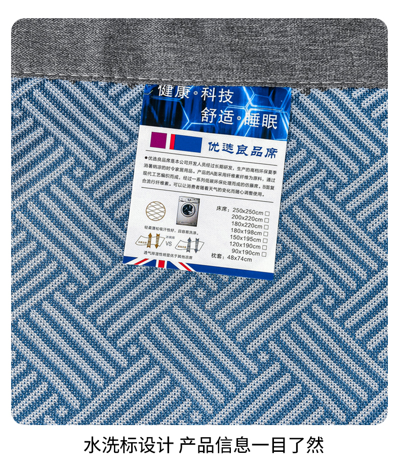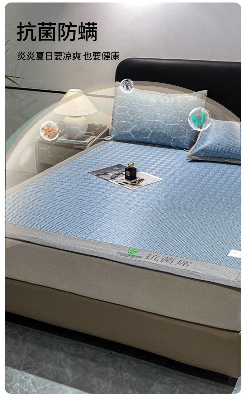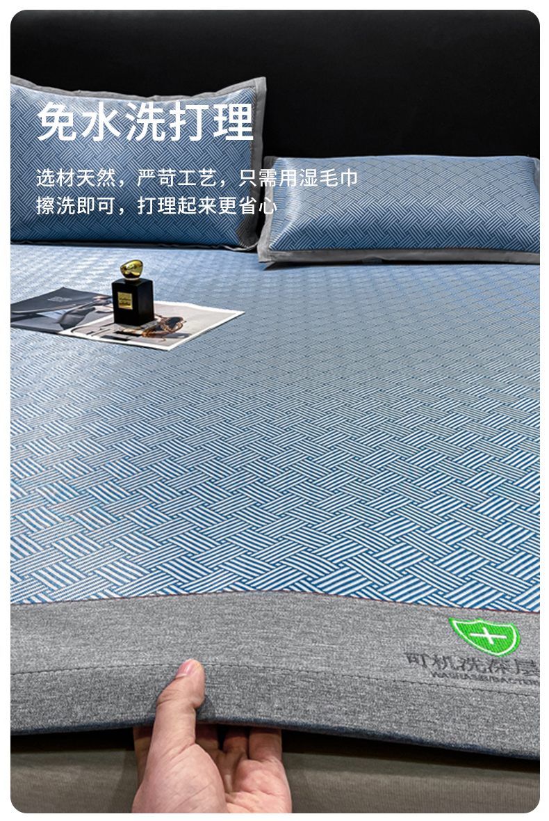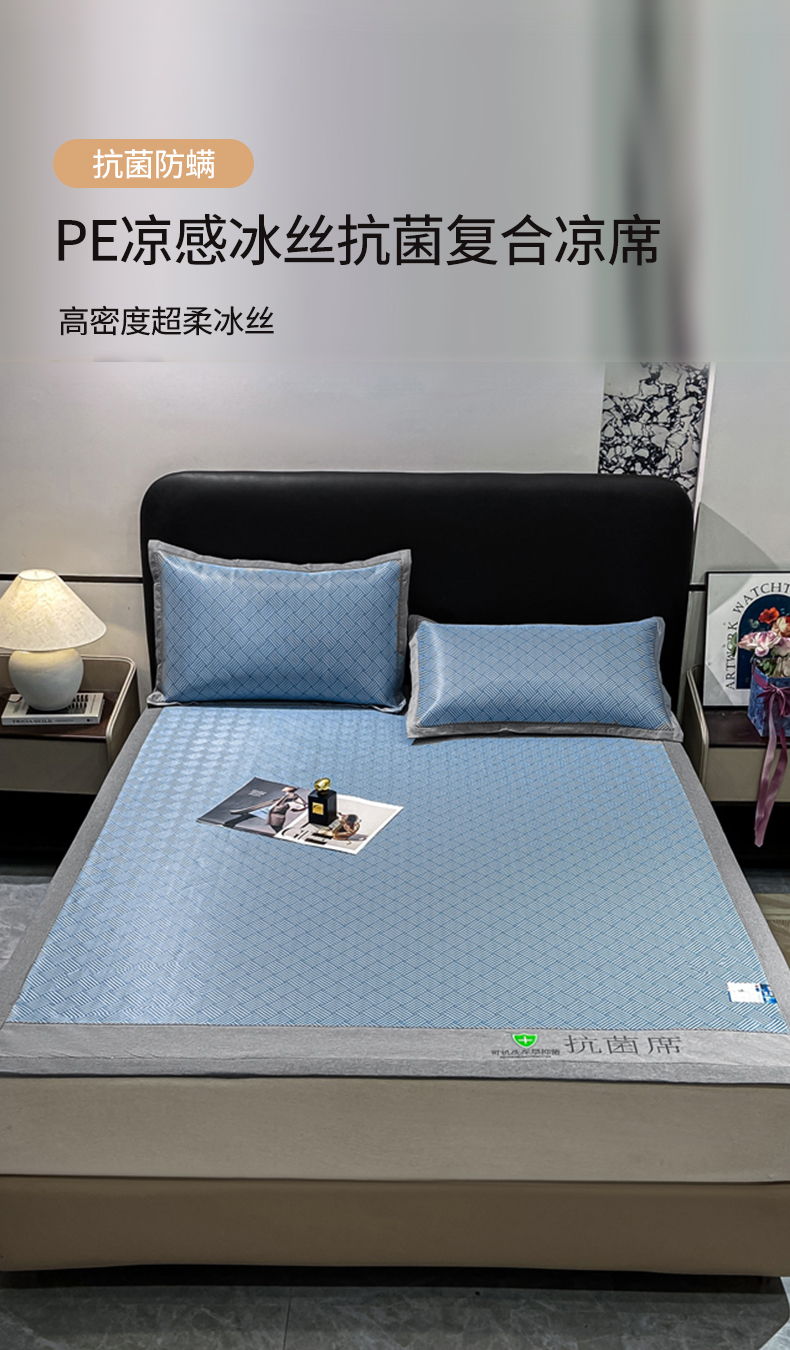 商品名称:念家居 2025新款凉感提花冰丝抗菌复合凉席可折叠冰丝席三件套 天空蓝