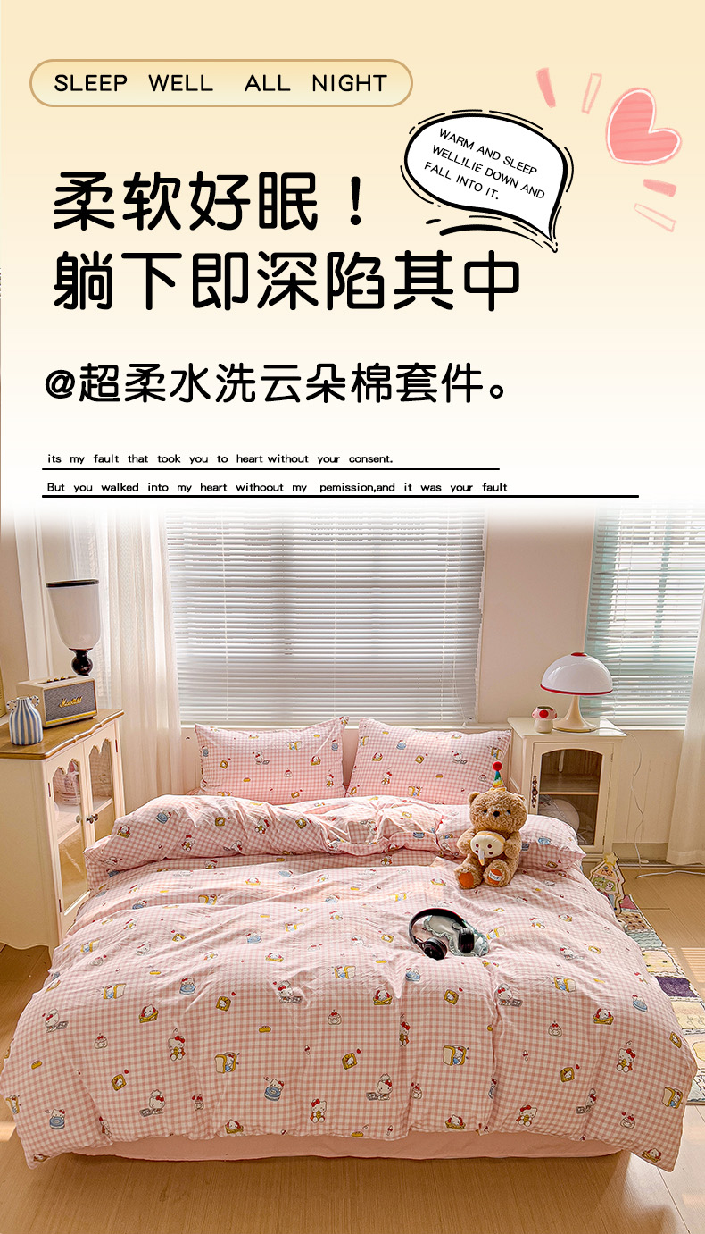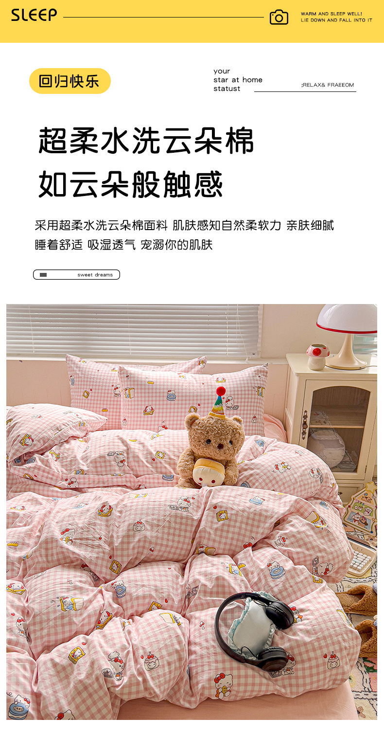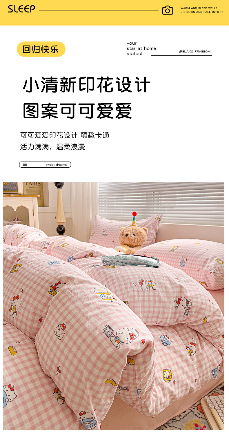 当前位置: 91家纺网 > 商品网购 > 床品套件 > 四件套 > 水洗棉四件套 > 奈颜 2025新款超柔水洗云朵棉爆款小清新印花四件套-面包猫咪 面包猫咪 仙女粉