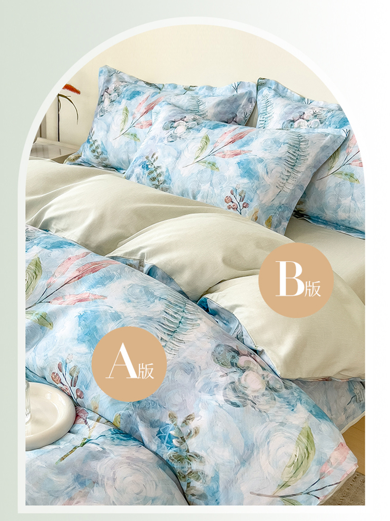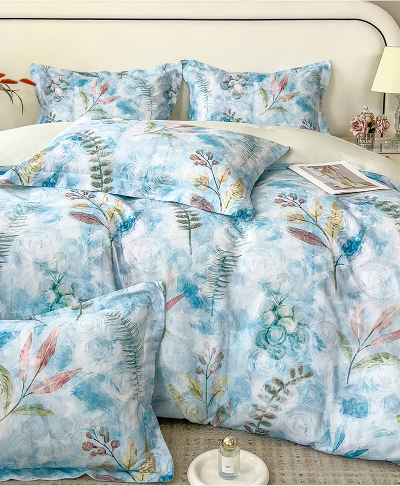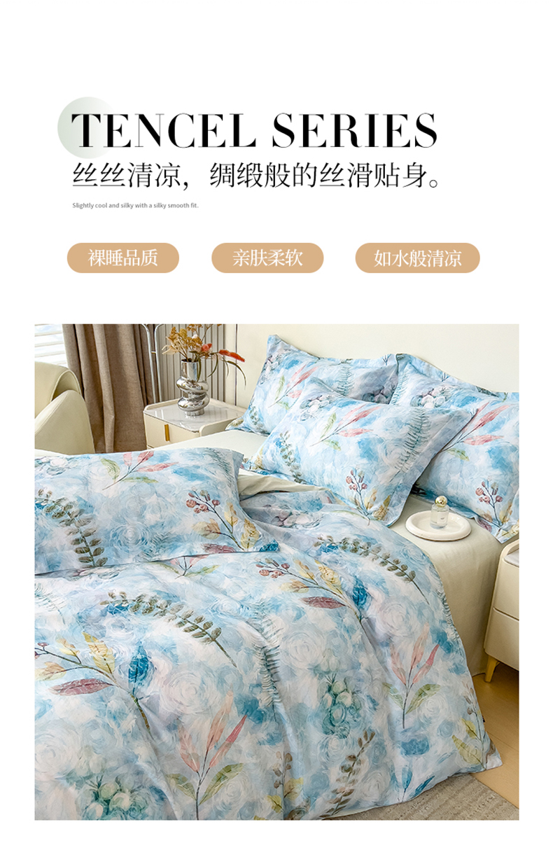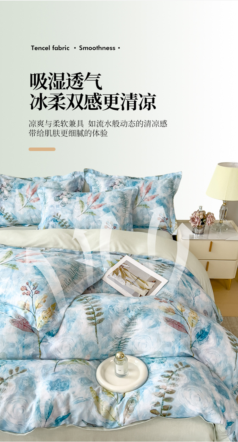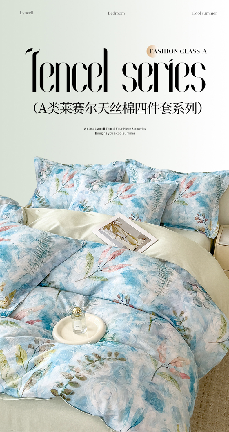 芃成家纺 2025新款A类莱赛尔天丝棉四件套 春色写意-兰