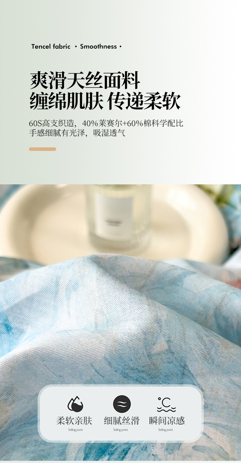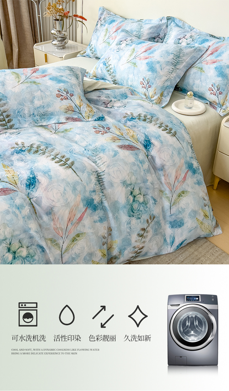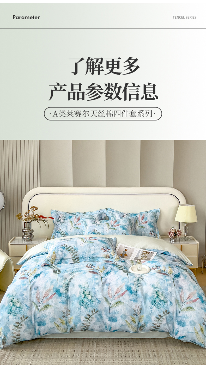 商品名称:芃成家纺 2025新款A类莱赛尔天丝棉四件套 春色写意-兰