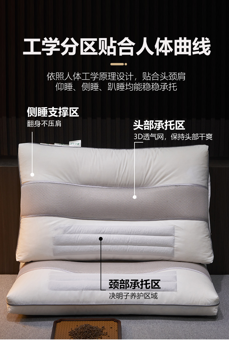 (总)乐可 2025新款分区两用牵引枕全棉双向枕 枕头枕芯,分区两用牵引枕