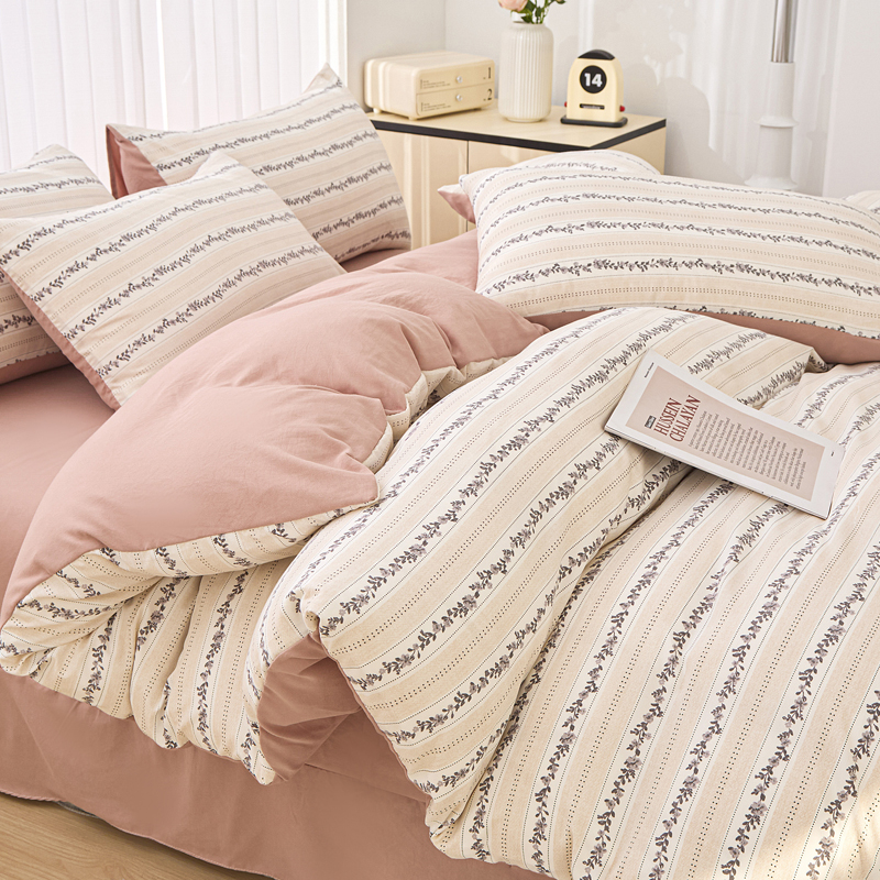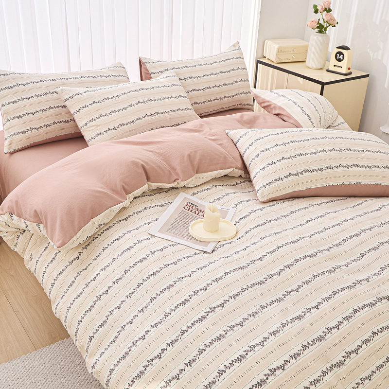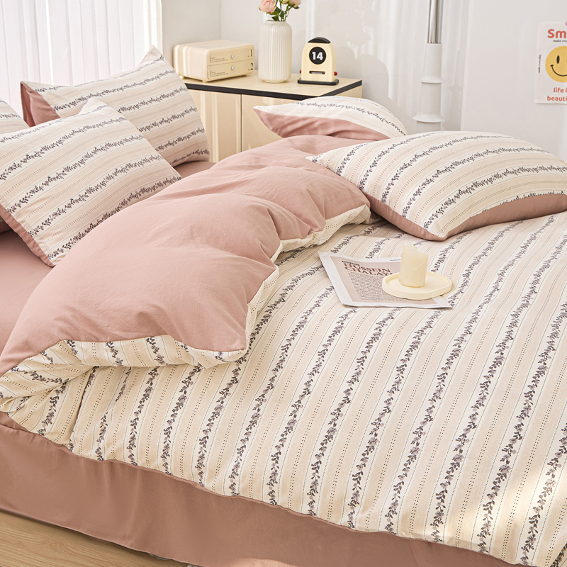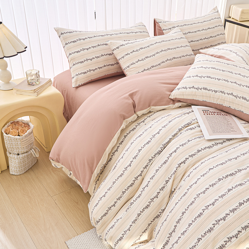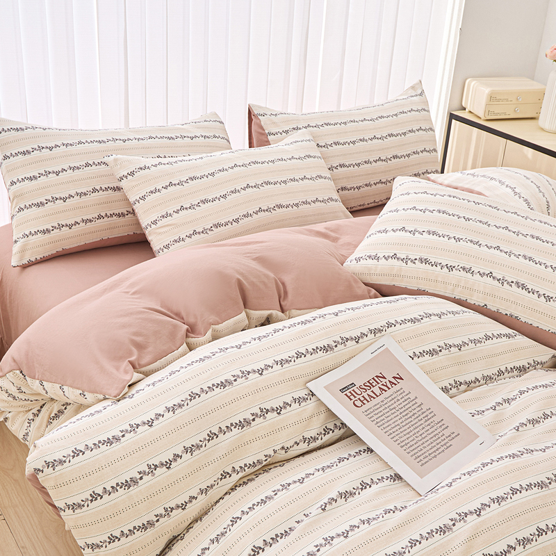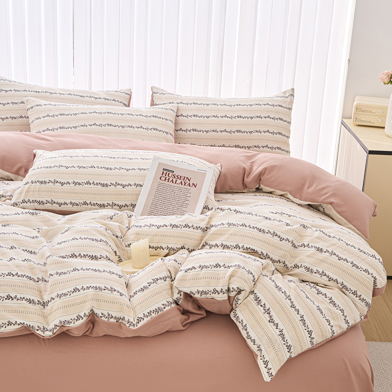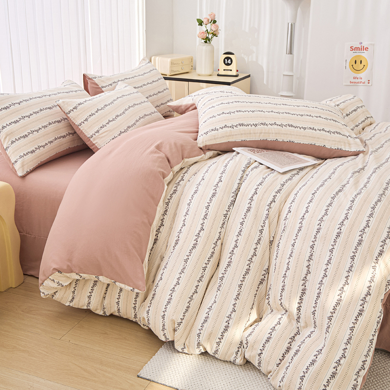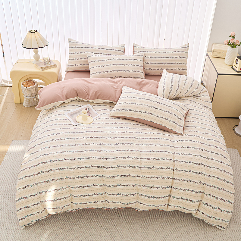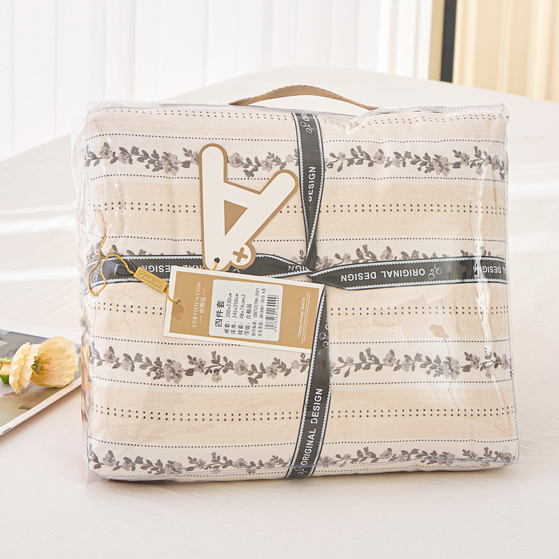 商品名称:蕾诺家纺 2025新款直播新款A类有氧提花云纱棉圆角吊边工艺四件套学生三件套 摩卡