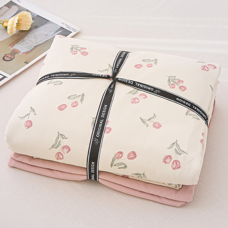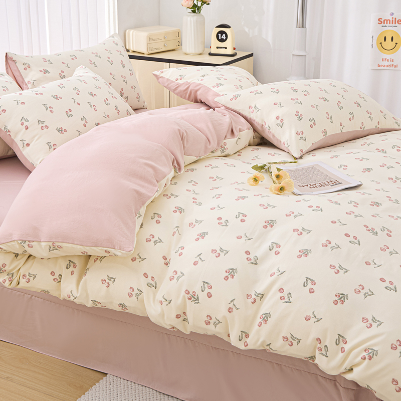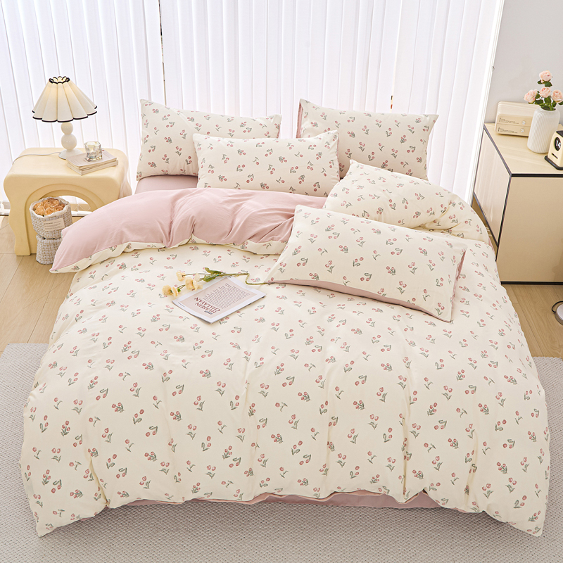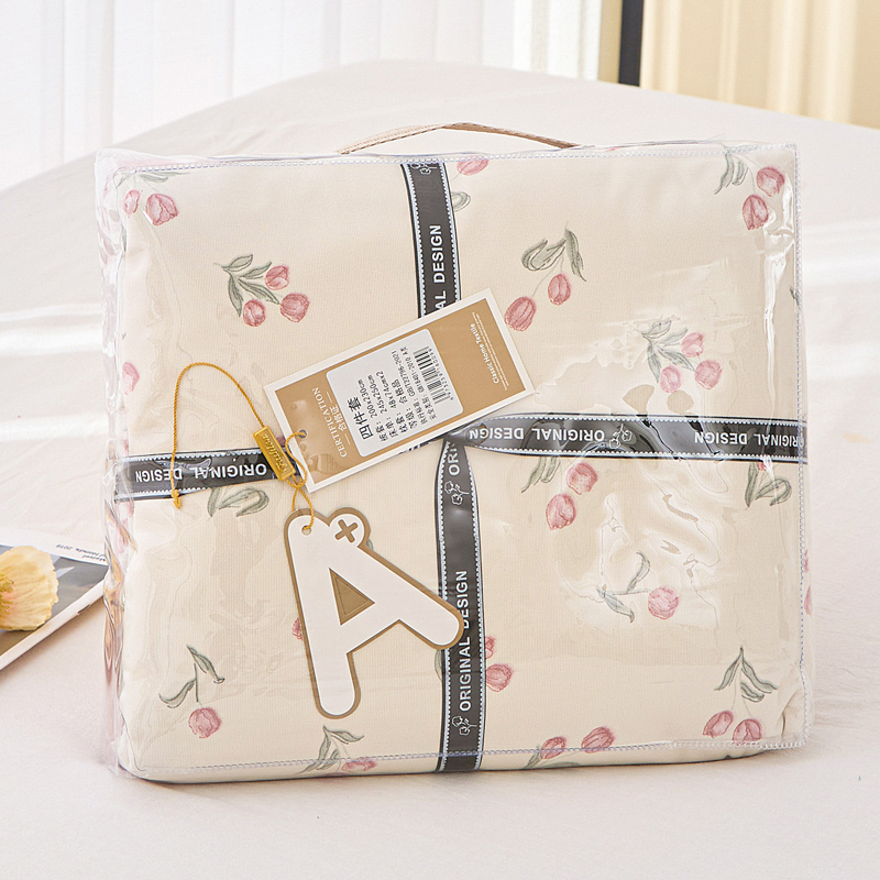 商品名称:蕾诺家纺 2025新款直播新款A类有氧提花云纱棉圆角吊边工艺四件套学生三件套 少女花季