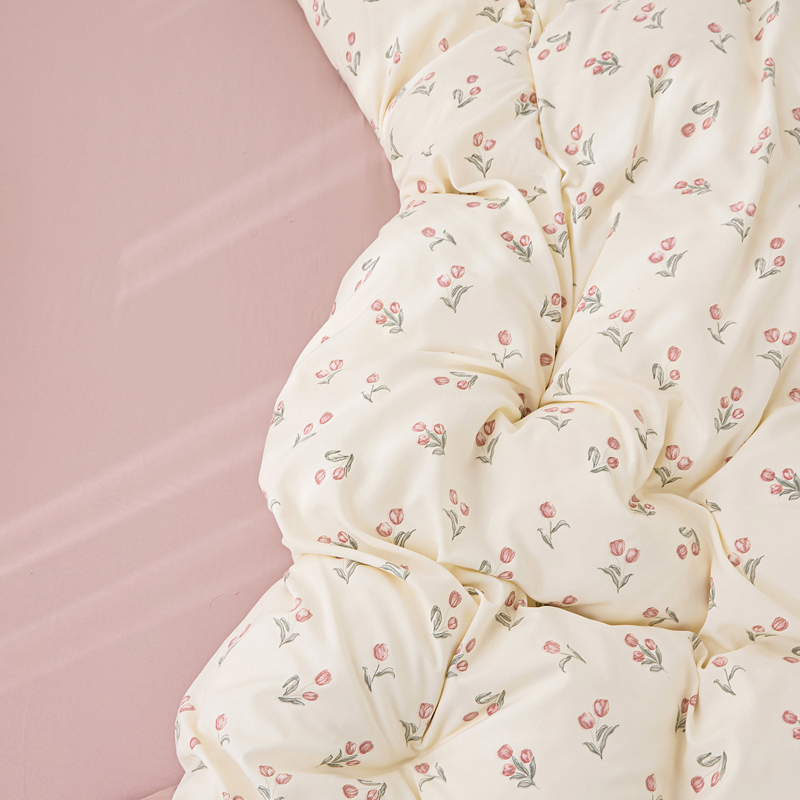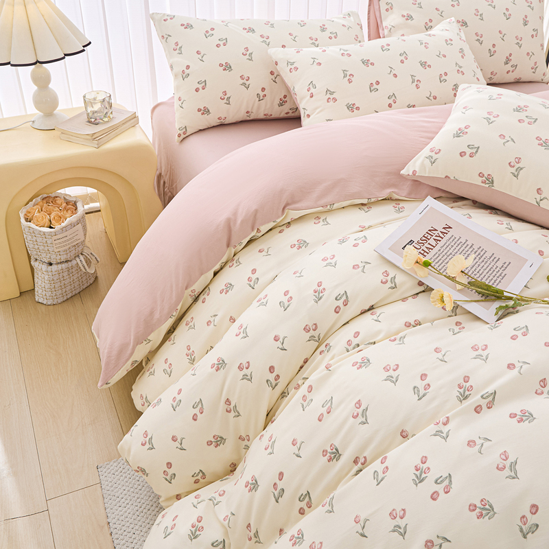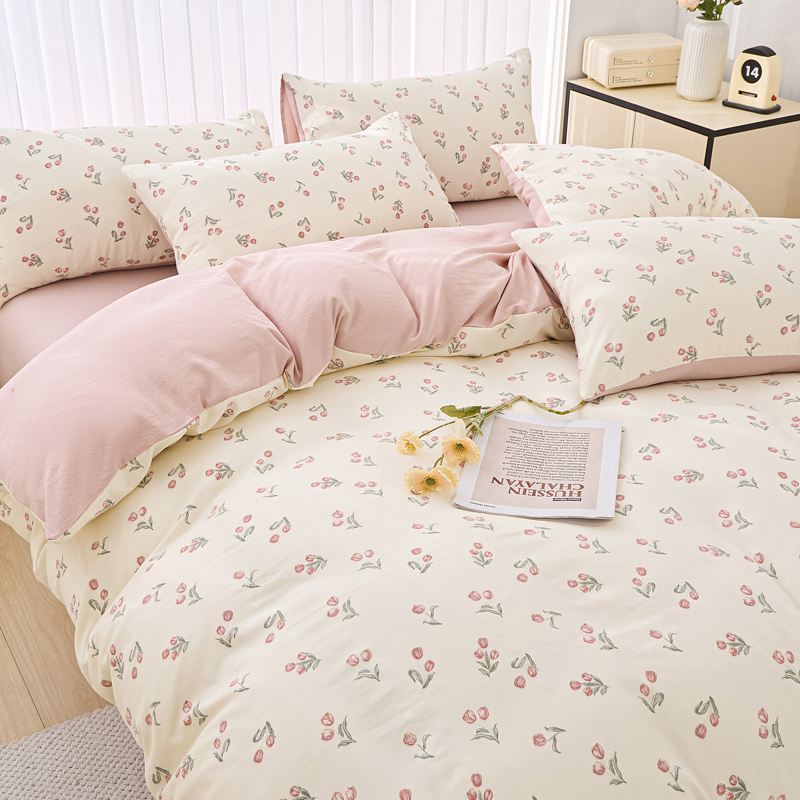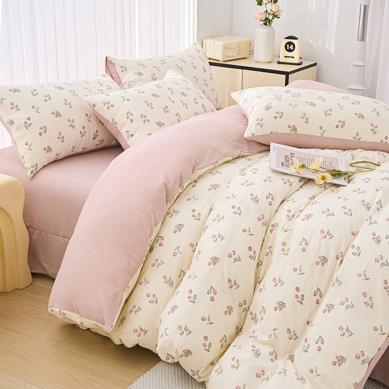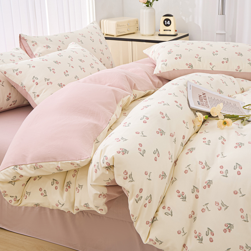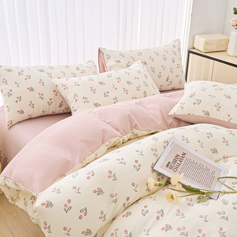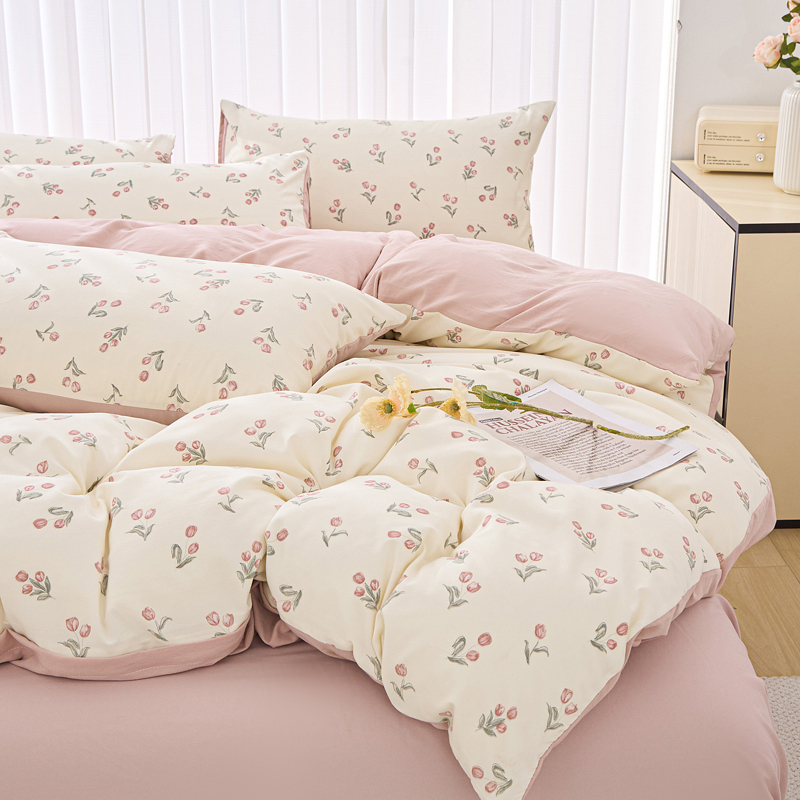 蕾诺家纺 2025新款直播新款A类有氧提花云纱棉圆角吊边工艺四件套学生三件套 少女花季